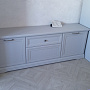 Использование светлого тона фасадов подчеркнёт деликатный шик интерьера. Направляющие скрытого монтажа с доводчикам обеспечат плавное бесшумное открывание ящиков.