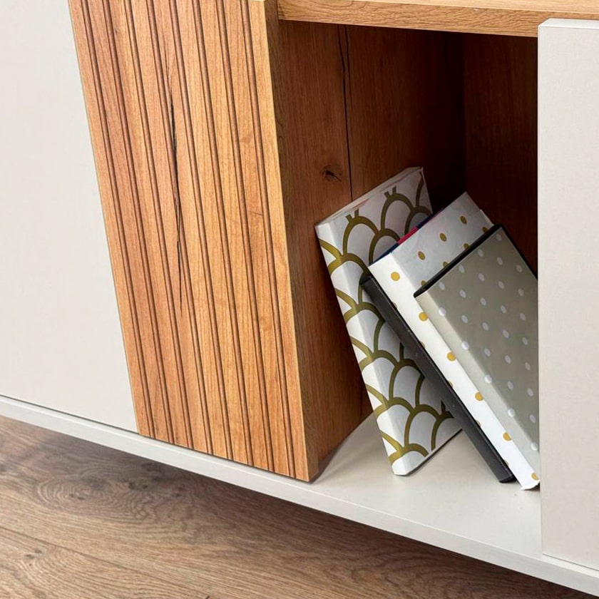 Тумба "Доминика" - это идеальное сочетание функциональности и элегантного дизайна, способное украсить любой интерьер. Она может служить как комодом для хранения различных предметов, так и тумбой для телевизора, обеспечивая удобство и стиль.