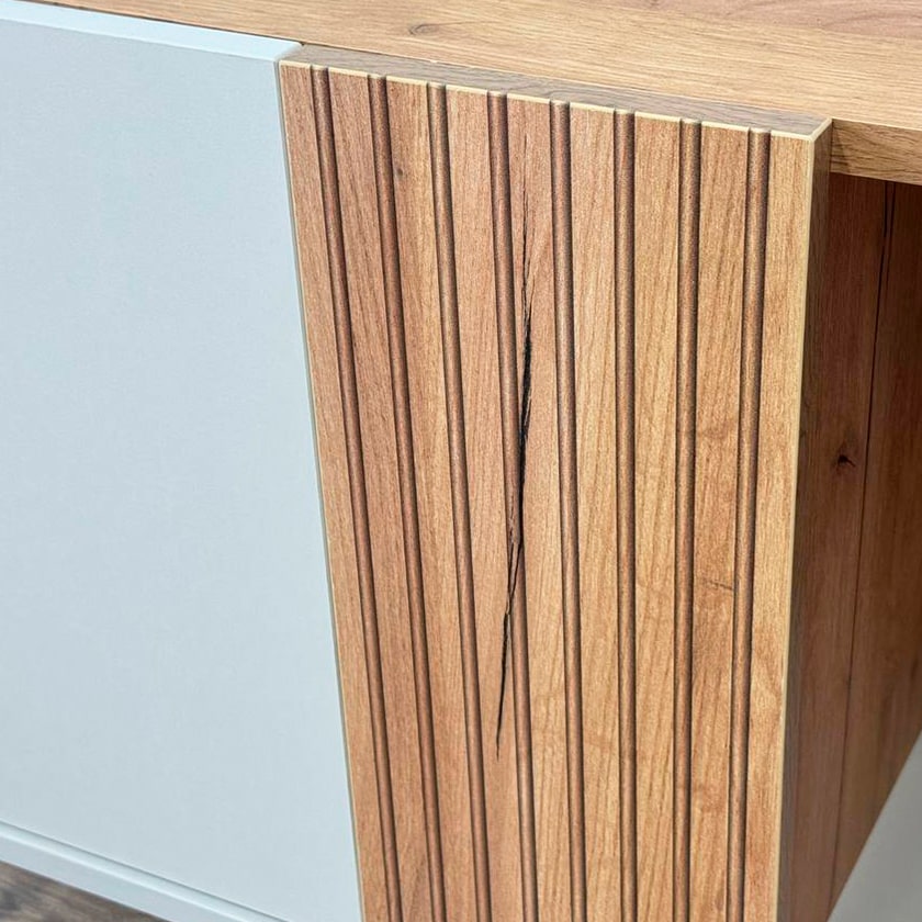 Уникальный декоративный элемент цвета "дуб крафт золотой" придает тумбе "Доминика" неповторимый шарм и роскошь. Этот элемент становится изюминкой дизайна, привлекающей внимание и добавляющей особый стиль.