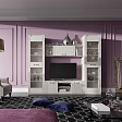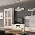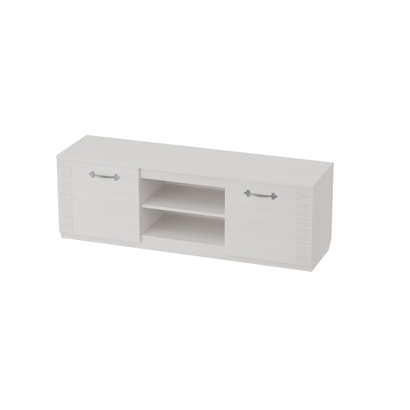 Тумба по ТВ имеет две ниши, закрытые дверцами и центральная открытая с одной съёмной полкой.