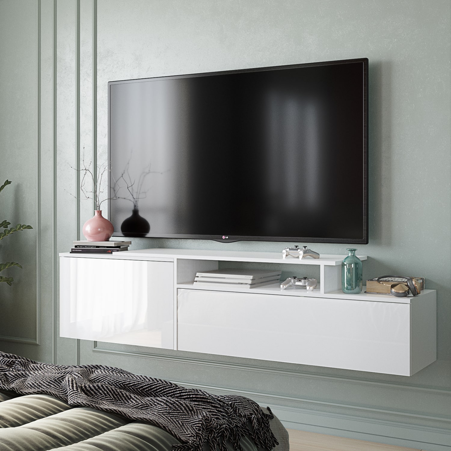 Тумба станет отличным решением для организации пространства в гостиной, обеспечивая удобное хранение и современный внешний вид. Благодаря подвесному монтажу визуально расширяет пространство помещения и упрощает уборку.