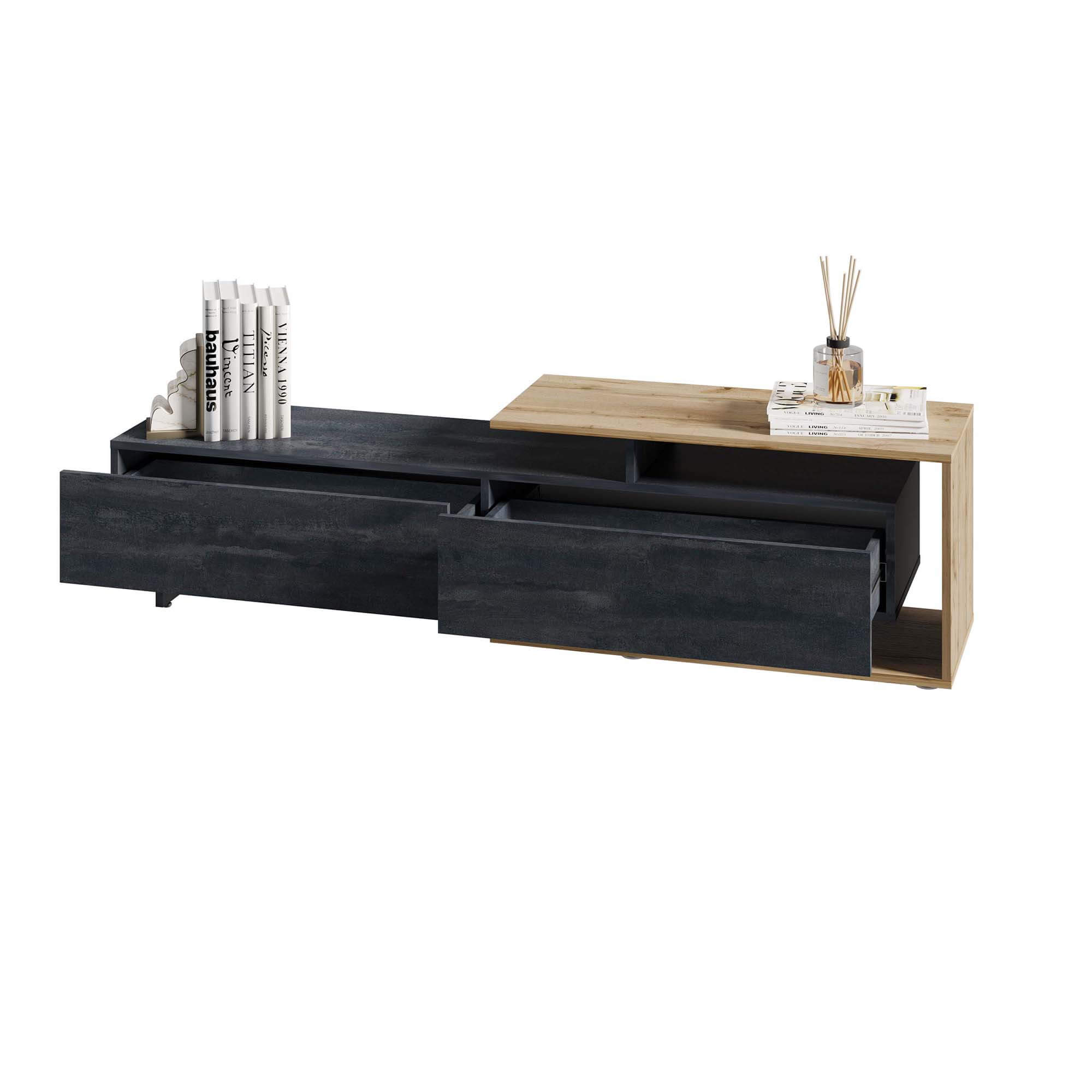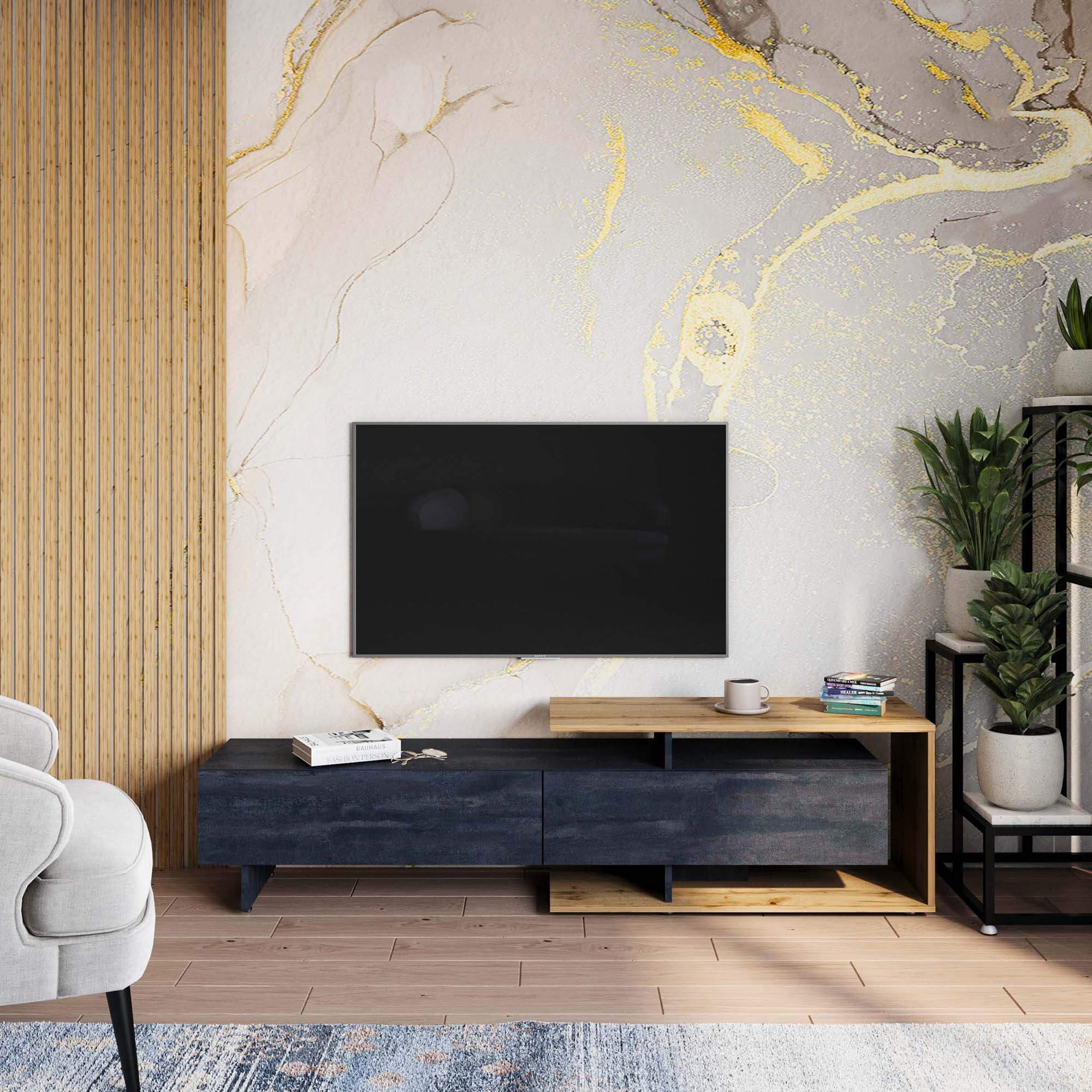 Тумба ТВ Кая представлена в нескольких вариантах отделки, что позволяет выбрать модель, которая наилучшим образом впишется в интерьер вашего дома.