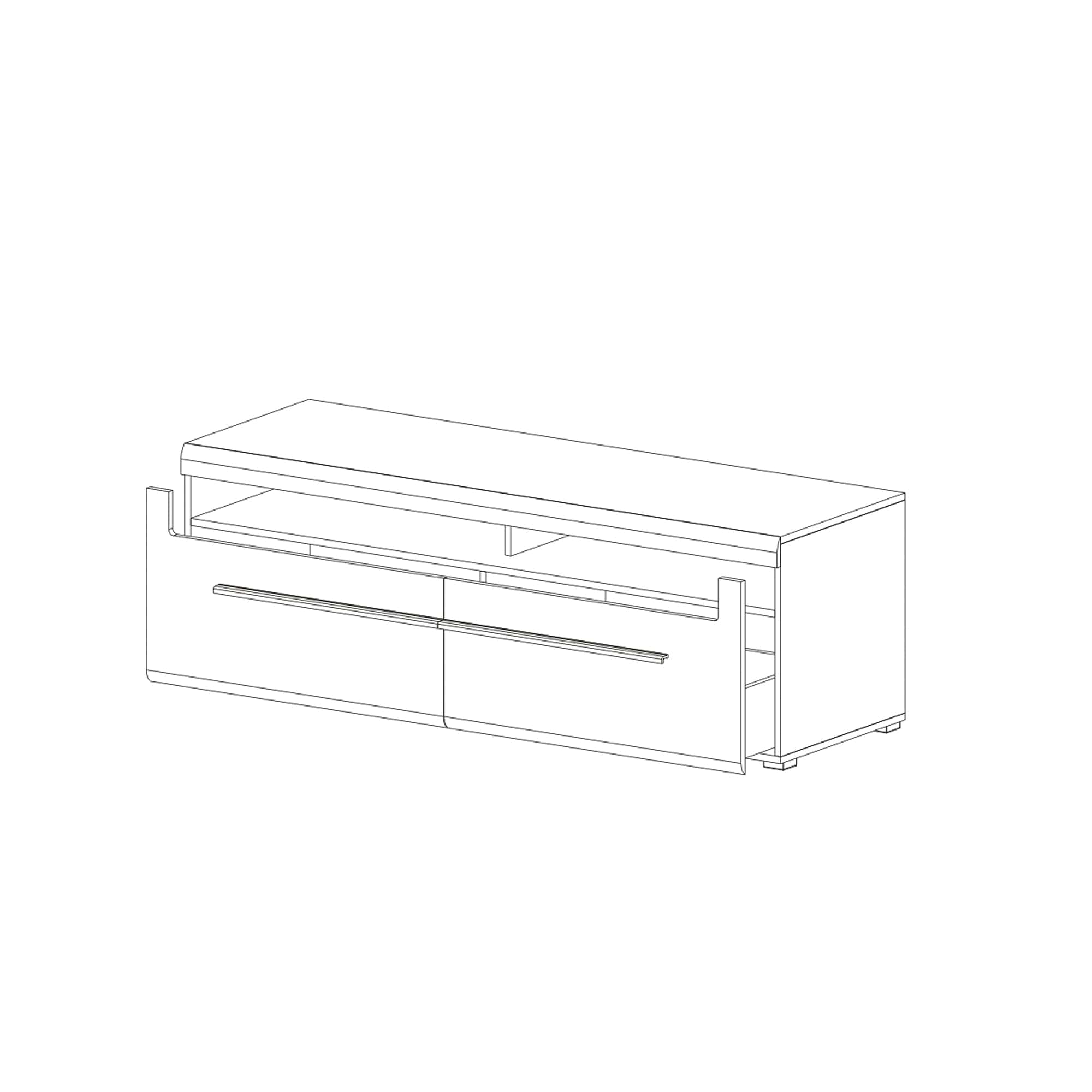 Корпус тумбы изготовлен из ЛДСП, фасады с закругленными линиями - из МДФ. Стиль изделия подчеркивают черные металлические ручки. Тумба имеет открытое отделение для хранения и два объемных выдвижных ящика на шариковых направляющих.