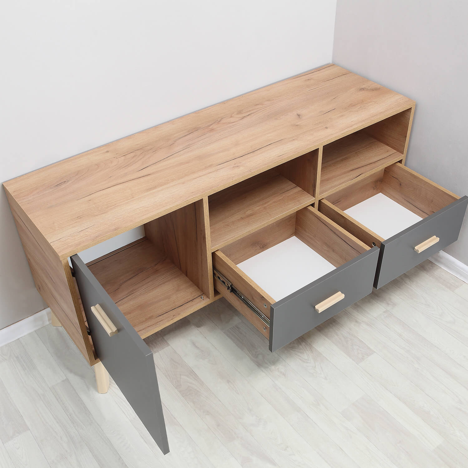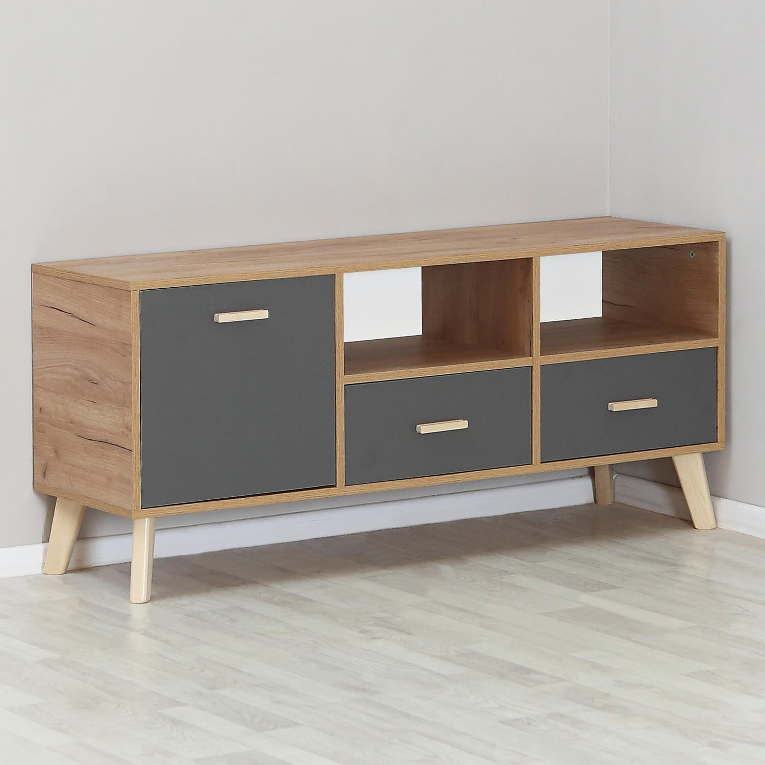 Тумба ТВ Скандик Дуб Крафт золотой/Графит серый