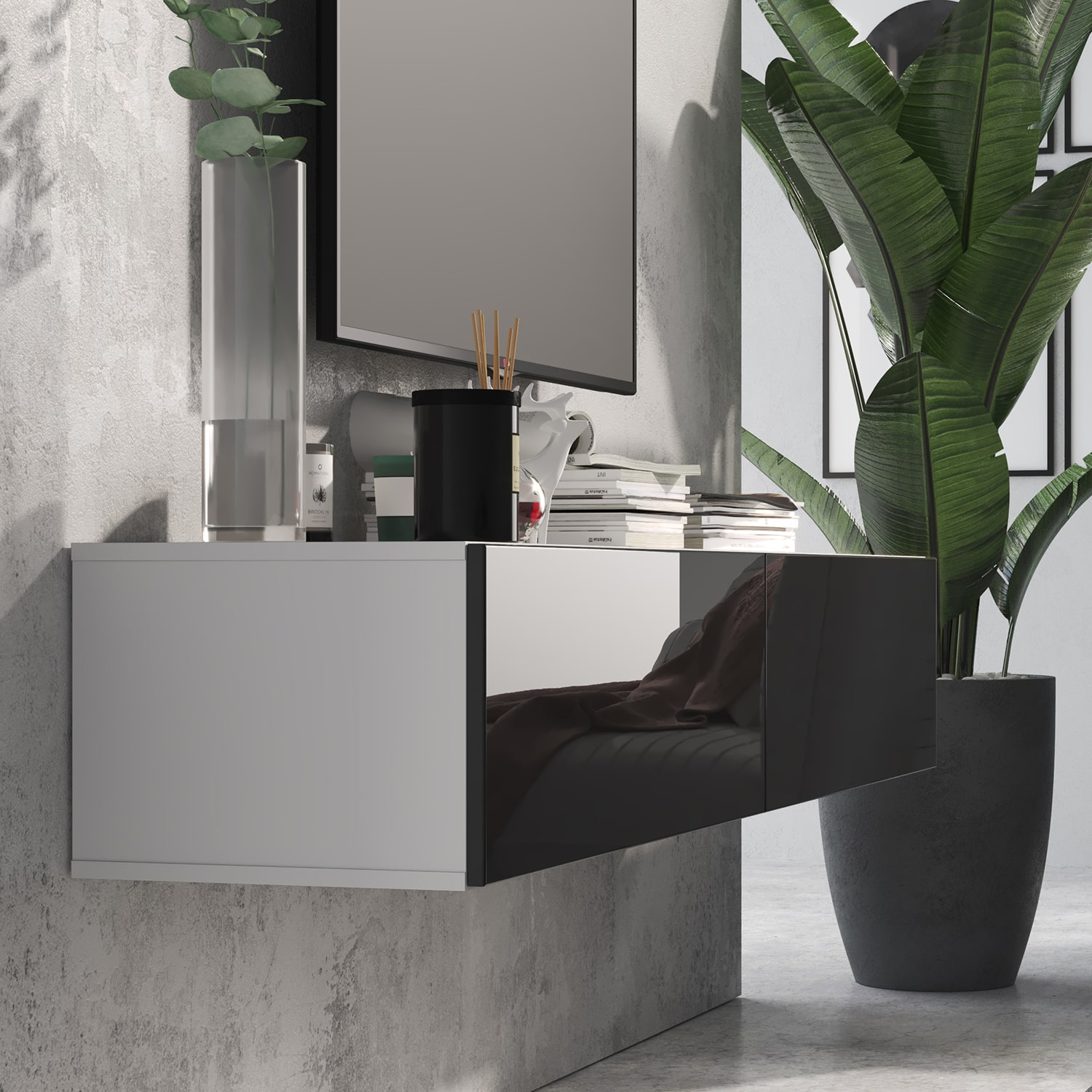 Тумба ТВ SOMERO 1400 Белый/Черный глянец