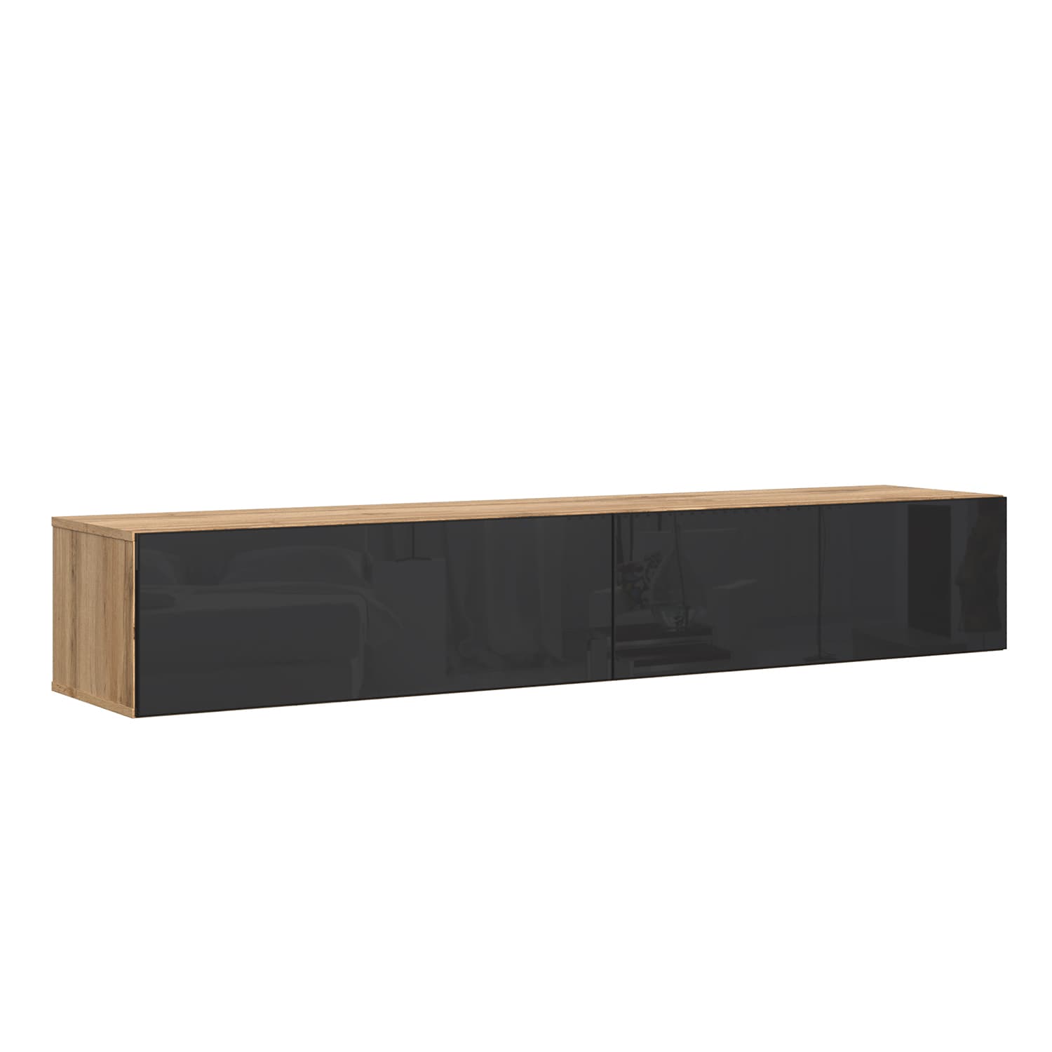 Тумба ТВ SOMERO 1800 Дуб Вотан/Черный глянец