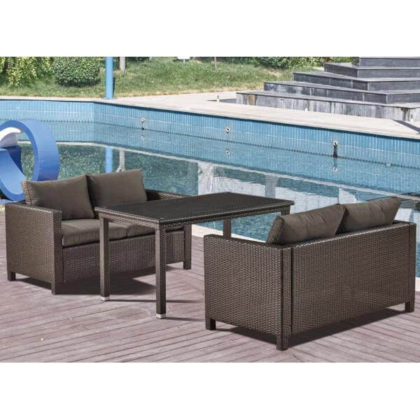 В составе комплекта: стол и 2 дивана. Высококачественная лоза из полиротанга коричневого цвета стойкая к любым атмосферным явлениям. Крепкий стальной каркас с полимерным антивандальным покрытием и отличным качеством сварки. Изделие сплетено вручную мастерами под жестким контролем качества на каждом этапе производства. Лоза максимально приближена по рельефу и текстуре к естественному материалу. Идеально подходит для использования на улице и внутри помещения в любую погоду. Не боится воды, солнца и минусовой температуры.