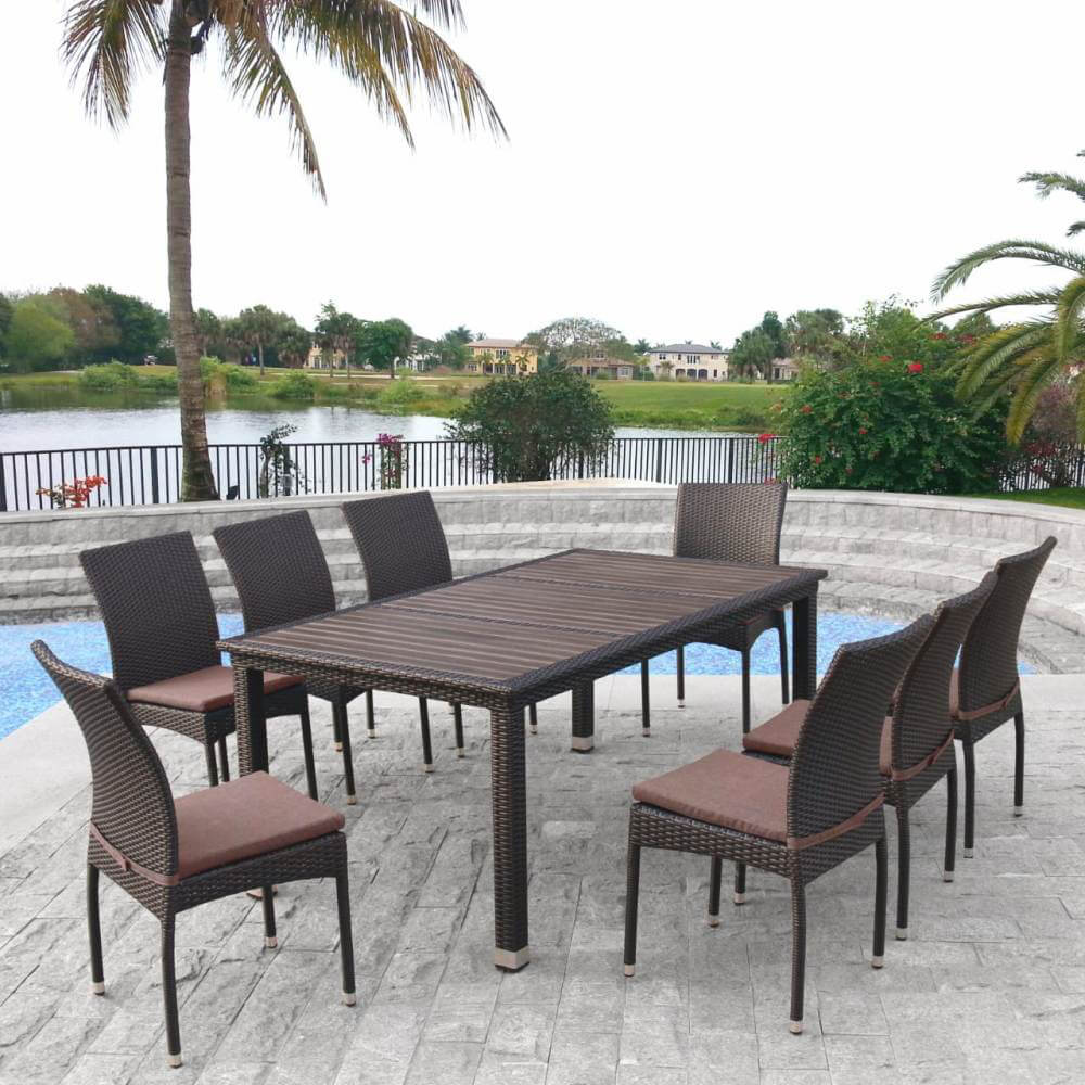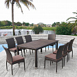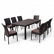 В составе комплекта: стол - столешница декинг и 8 стульев с подушками. Высококачественная лоза из полиротанга коричневого цвета стойкая к любым атмосферным явлениям. Крепкий стальной каркас с полимерным антивандальным покрытием и отличным качеством сварки. Изделие сплетено вручную мастерами под жестким контролем качества на каждом этапе производства. Лоза максимально приближена по рельефу и текстуре к естественному материалу. Идеально подходит для использования на улице и внутри помещения в любую погоду. Не боится воды, солнца и минусовой температуры.