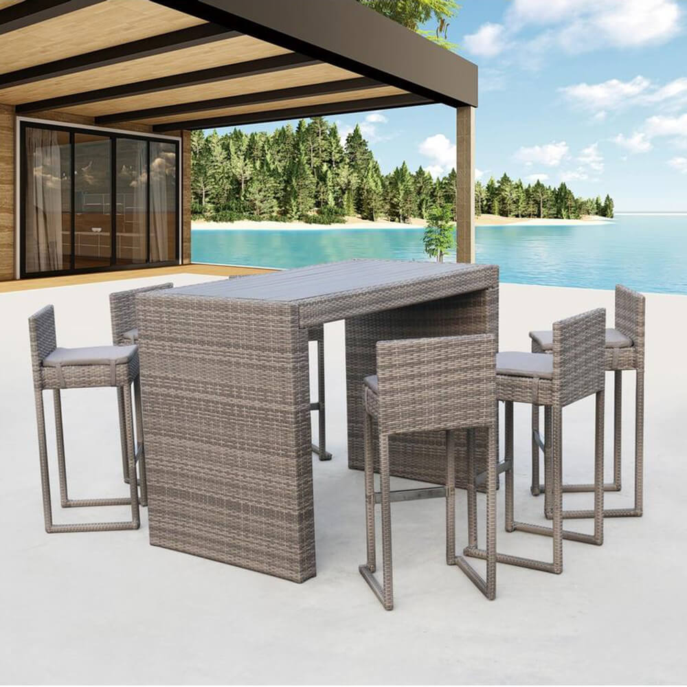 Высокий барный стул с подушкой в комплекте подойдет под любую барную стойку. Высококачественная лоза из полиротанга коричневого цвета стойкая к любым атмосферным явлениям. Крепкий стальной каркас с полимерным антивандальным покрытием и отличным качеством сварки. Изделие сплетено вручную нашими мастерами под жестким контролем качества на каждом этапе производства. Лоза максимально приближена по рельефу и текстуре к естественному материалу. Идеально подходит для использования на улице и внутри помещения в любую погоду. Не боится воды, солнца и минусовой температуры.