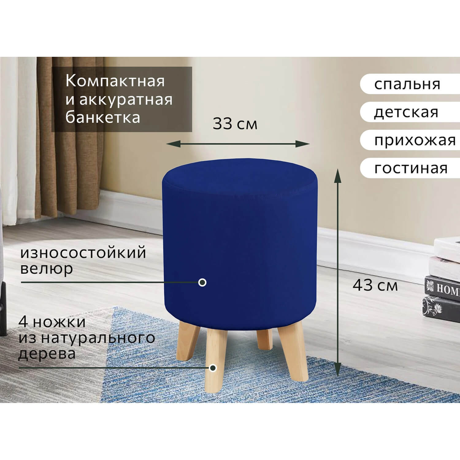 Круглая банкетка на ножках - это удобный и стильный предмет мебели, который может быть использован как место для сидения или как прикроватный пуфик. Она выполнена из ткани, что позволяет ей быть мягкой и удобной для сидения.