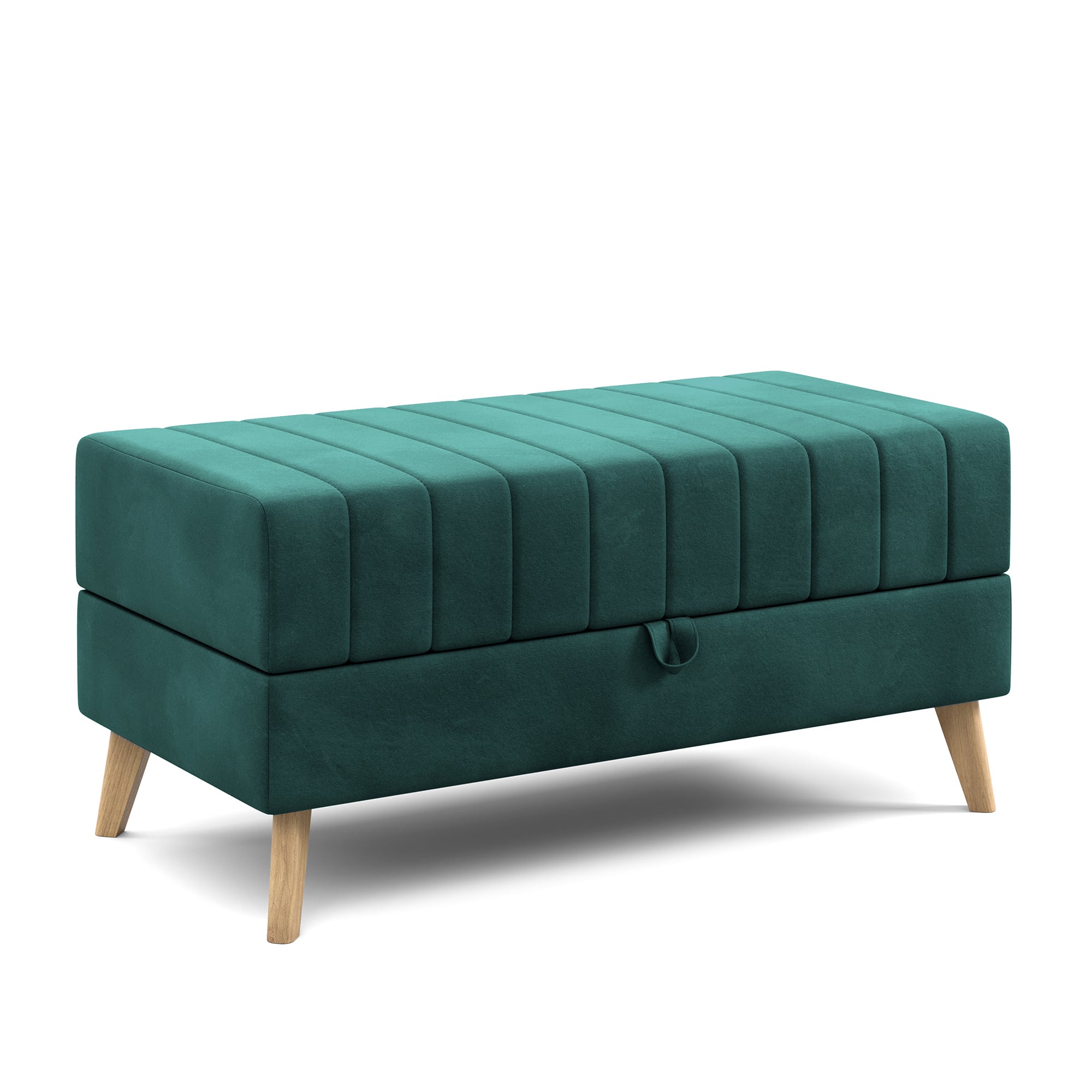 Декоративная отстрочка по высококачественному велюру добавляет приятный объем и украшает изделие. Опоры выполнены из массива берёзы, покрыты прозрачным лаком и имеют защитные войлочные наклейки. Банкетка хороша не только в гостиной, но и в гостиной, спальне, на кухне и в детской комнате. Максимальная нагрузка 110 кг.