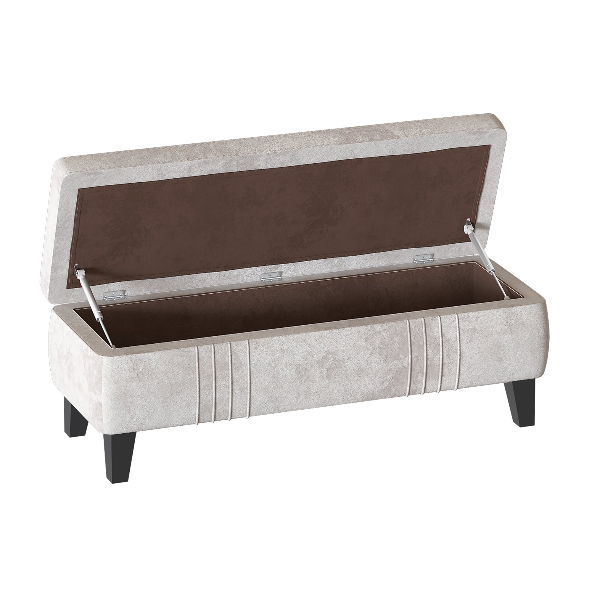 Декоративная отстрочка по высококачественному велюру добавляет приятный объем и украшает изделие. Опоры выполнены из массива берёзы, покрыты прозрачным лаком и имеют защитные войлочные наклейки. Банкетка хороша не только в спальне, но и в гостиной, на кухне и в детской комнате. Максимальная нагрузка 110 кг.