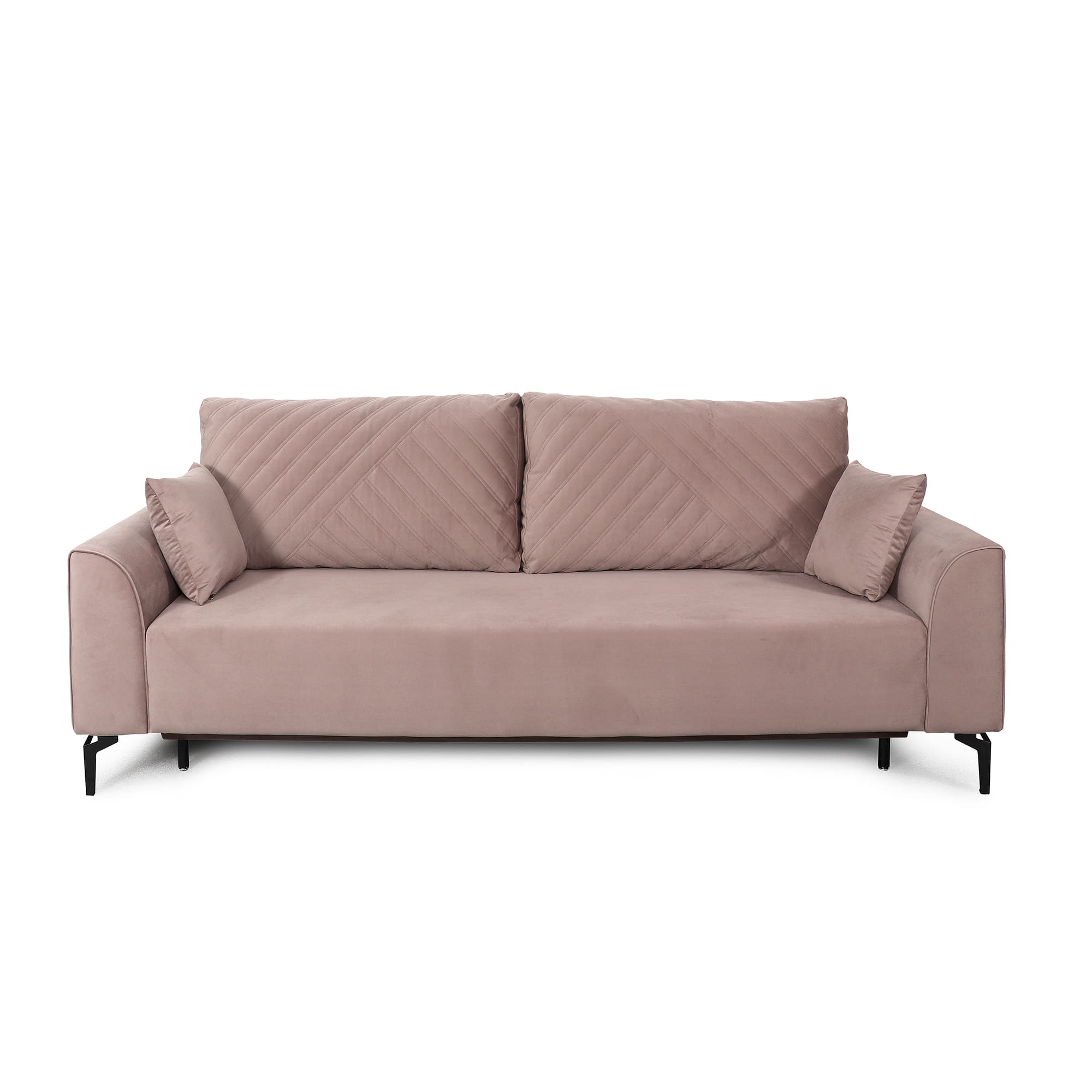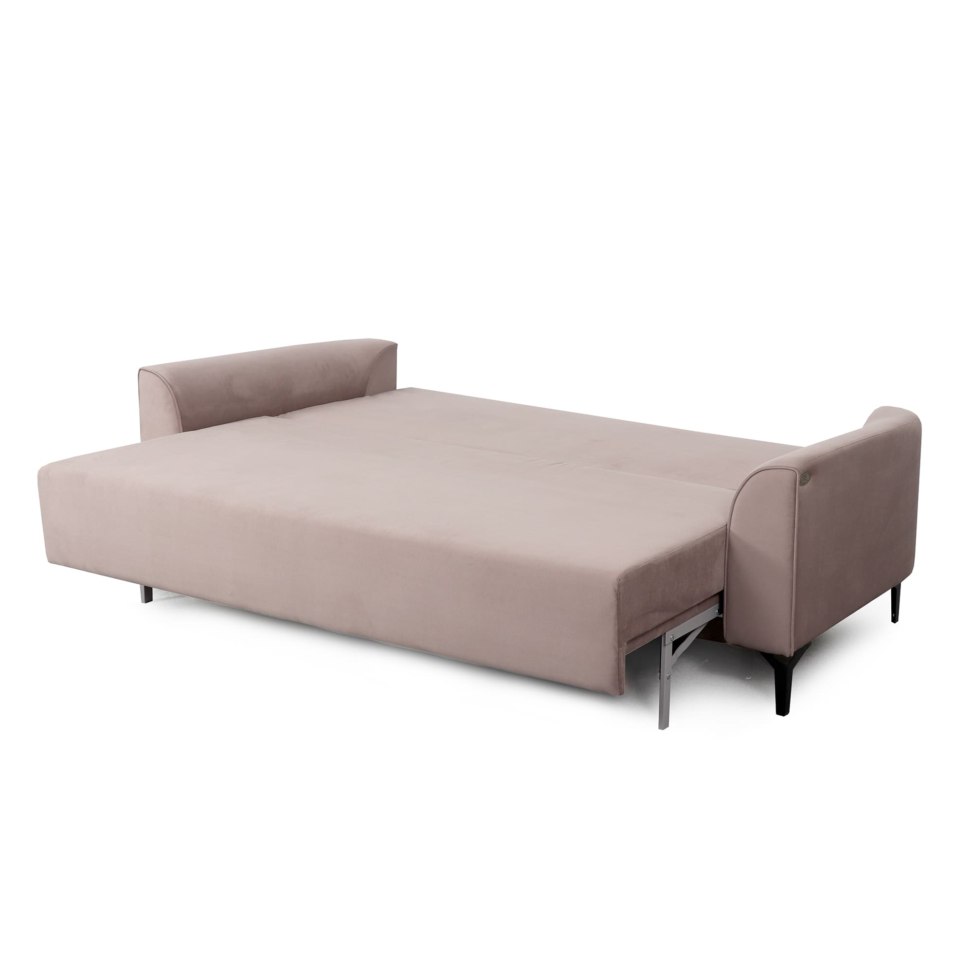 Плавные линии подлокотников позволяют удобно расположиться во время отдыха. Диван стоит на высоких металлических опорах, что позволяет использовать робот-пылесос в процессе уборки. Удобный и долговечный механизм трансформации "Тик-так" обеспечивает легкое раскладывание дивана.