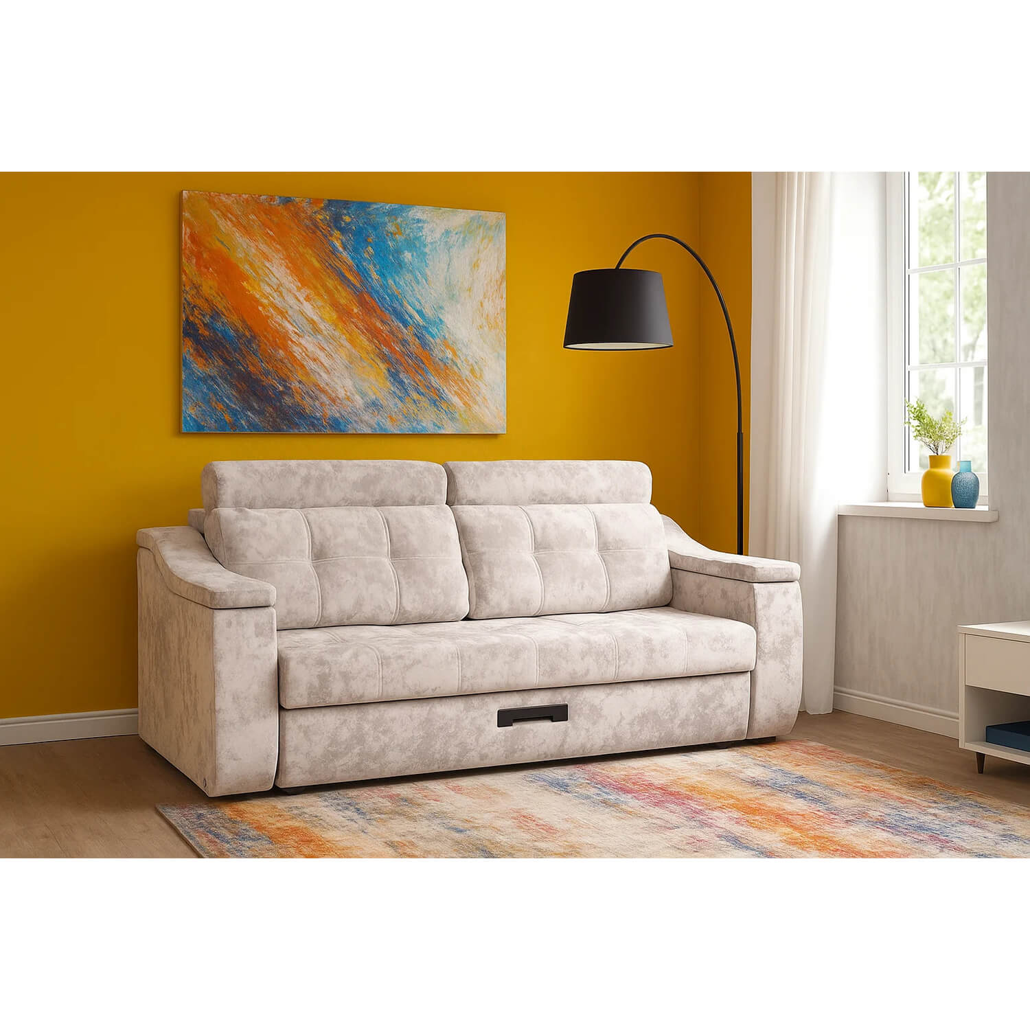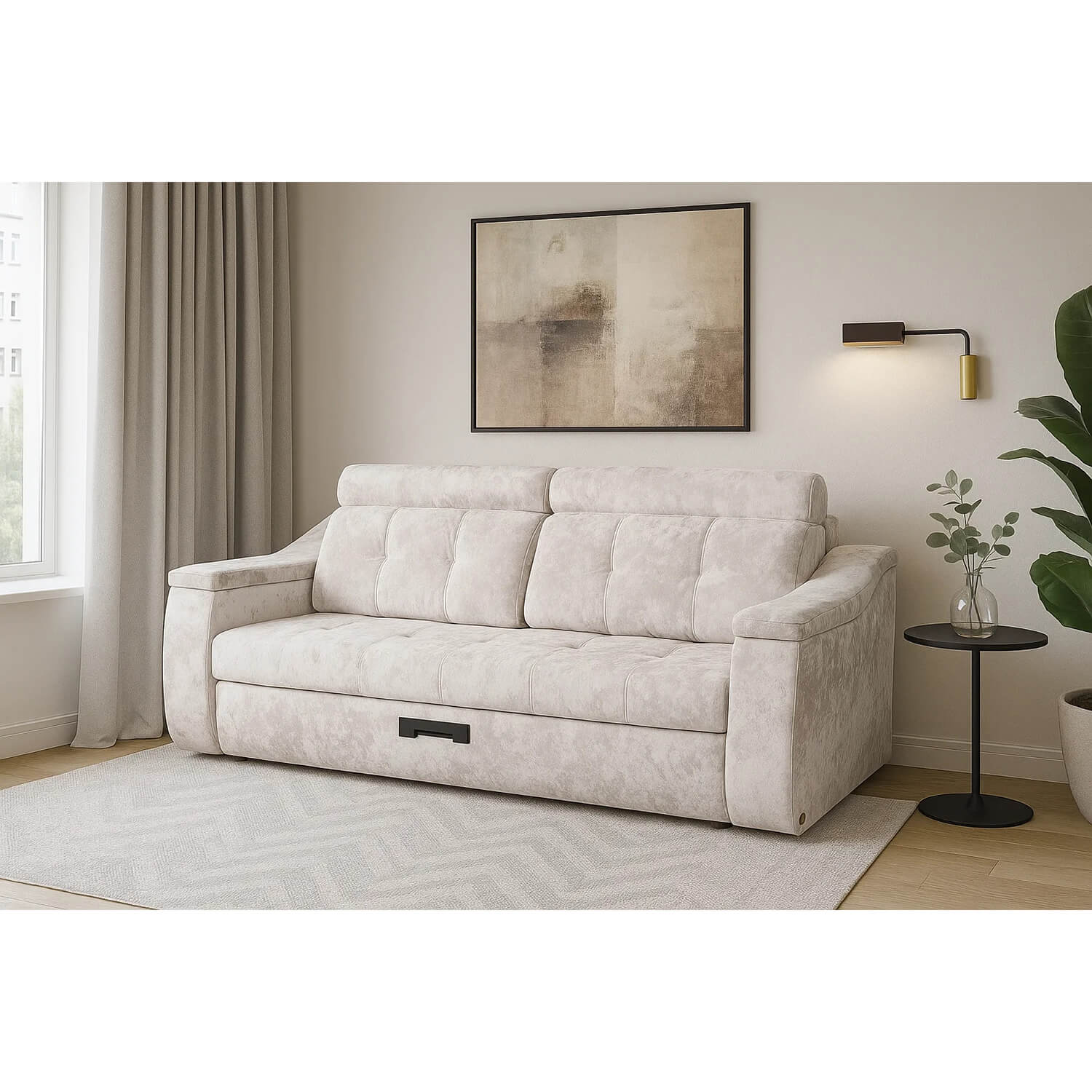 Откройте для себя комфорт с диваном «Фаворит»! Модель с механизмом тройной раскладки трансформируется в просторное спальное место (2180×1910 мм). Прочный металлический каркас обеспечивает надёжность конструкции, а продуманное многослойное наполнение сиденья и спинки (независимые пружины, холкон, ППУ, термовойлок и синтепон) дарит оптимальную поддержку и мягкость. Подушки с наполнителем Сорель не деформируются и быстро восстанавливают форму. Эргономичные параметры — высота сиденья 480 мм и подлокотника 815 мм — гарантируют удобную посадку. Изящные декоративные утяжки добавляют изделию эстетическую завершённость.