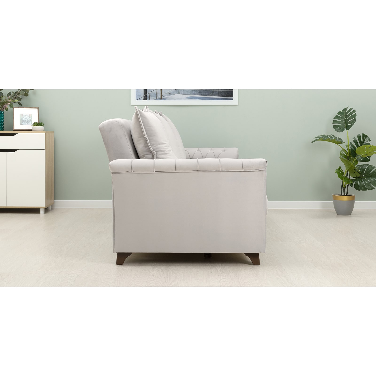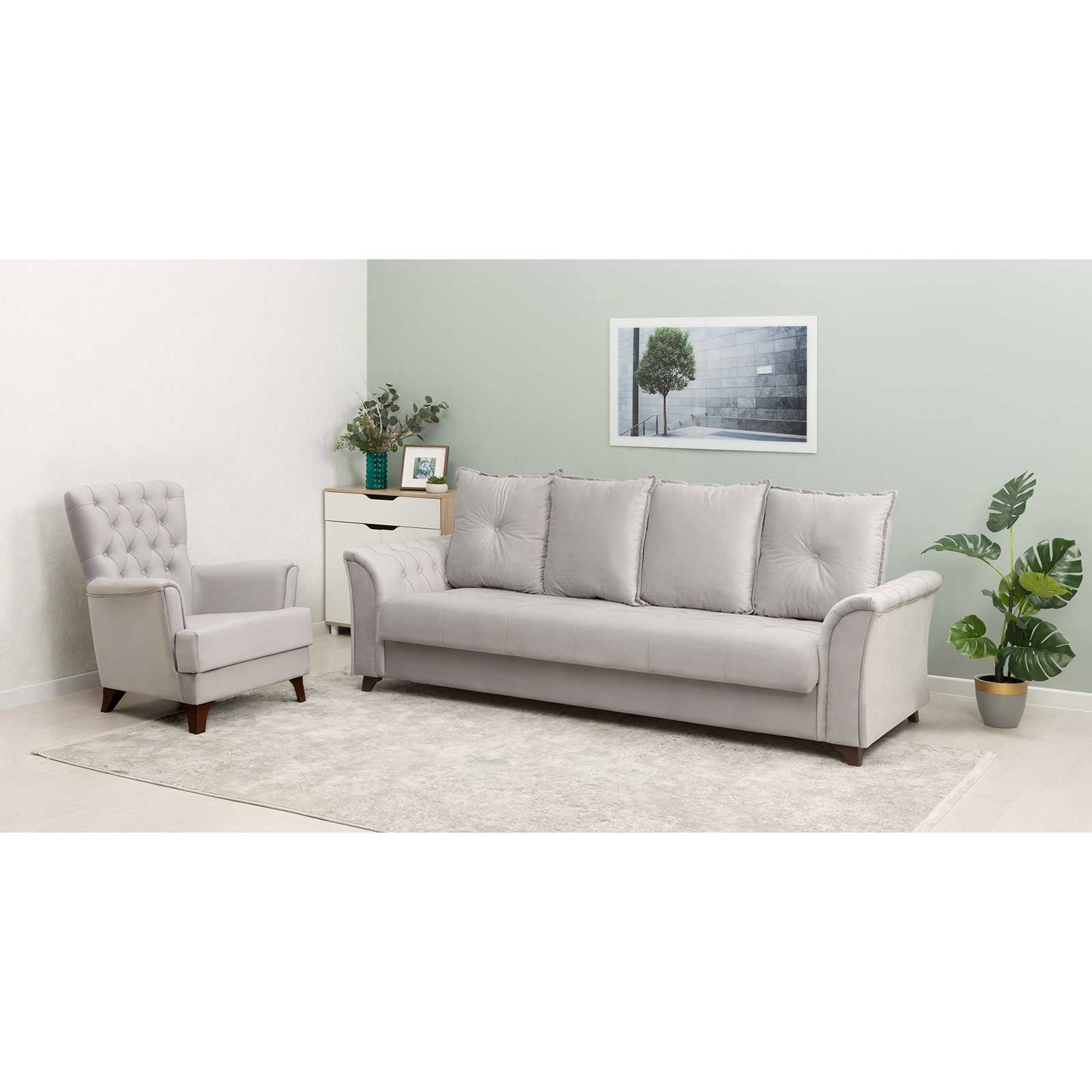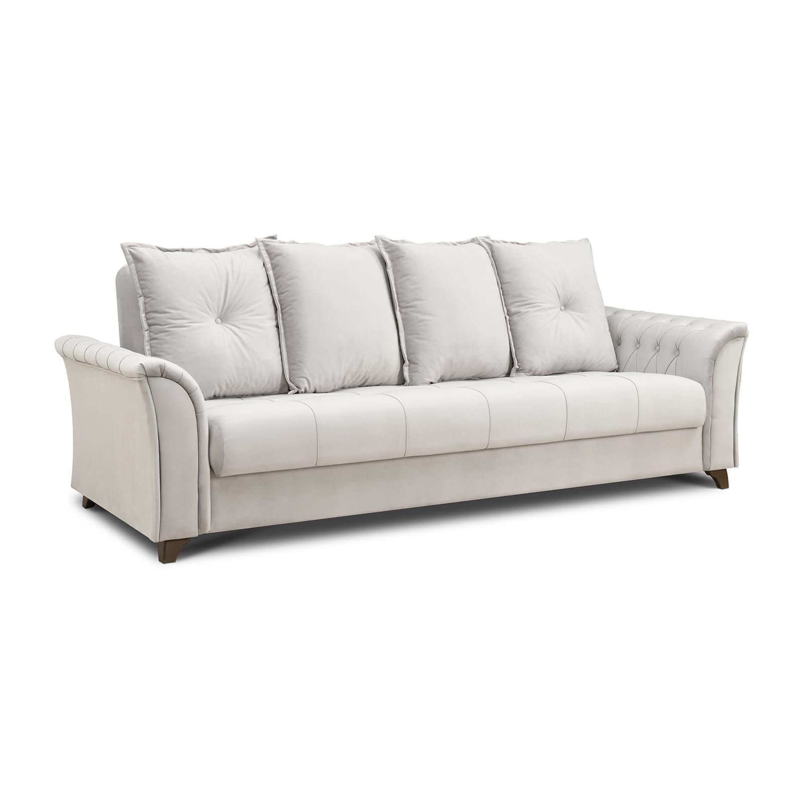 Декор: декоративная отстрочка, защипы и утяжка на сиденье, защипы и утяжка с пуговицами на подлокотниках. Утяжка с пуговицами на приспинных подушках.