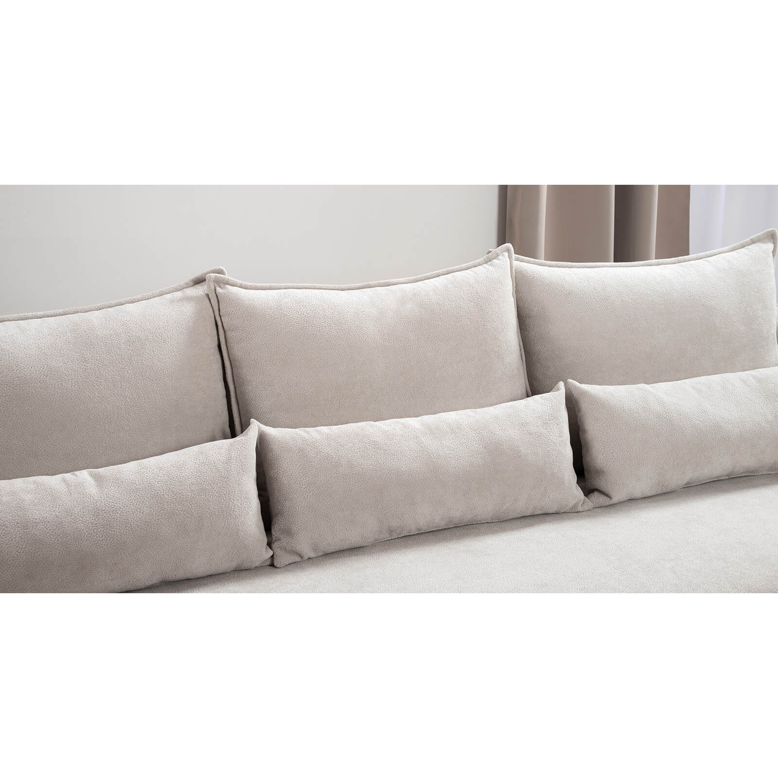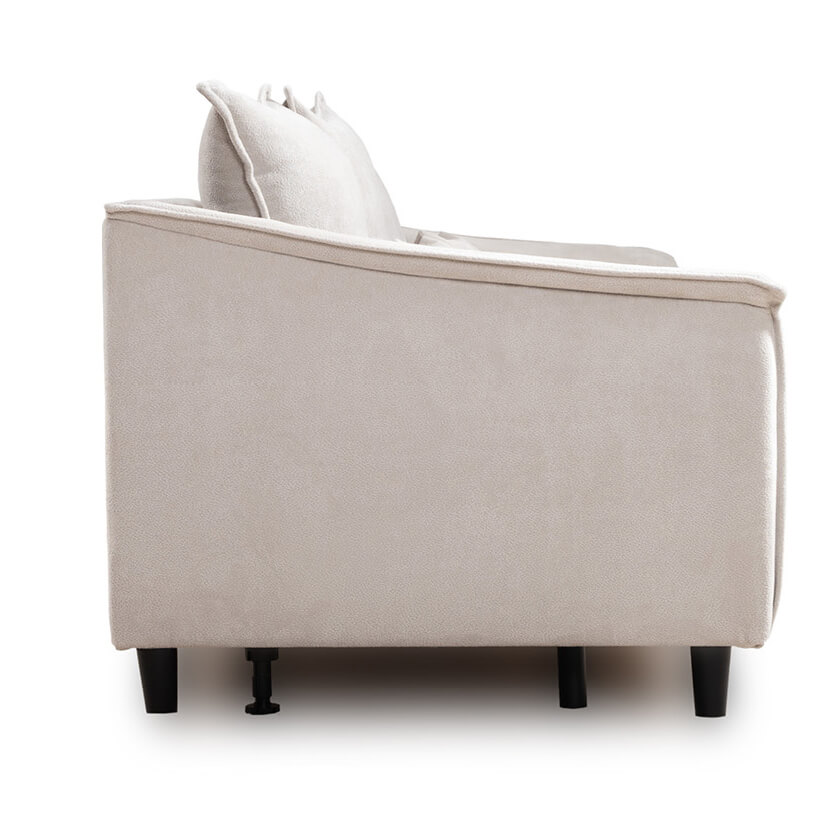 Декор: Спинка с тремя приспинными подушками. Две подушки трапецивидной формы, центральная квадратной формы на молнии, по трем сторонам которых проложена отделочная строчка на 1,2 см. По контуру боковин проложен декоративный кант на 1,2 см из основной ткани. Кант проходит по центру передней части боковины, а по внутренней верхней части сборка.