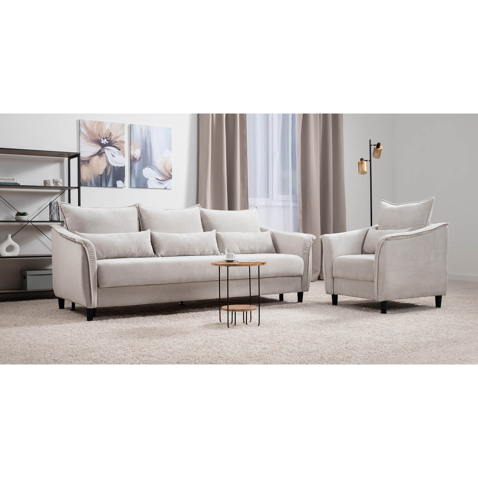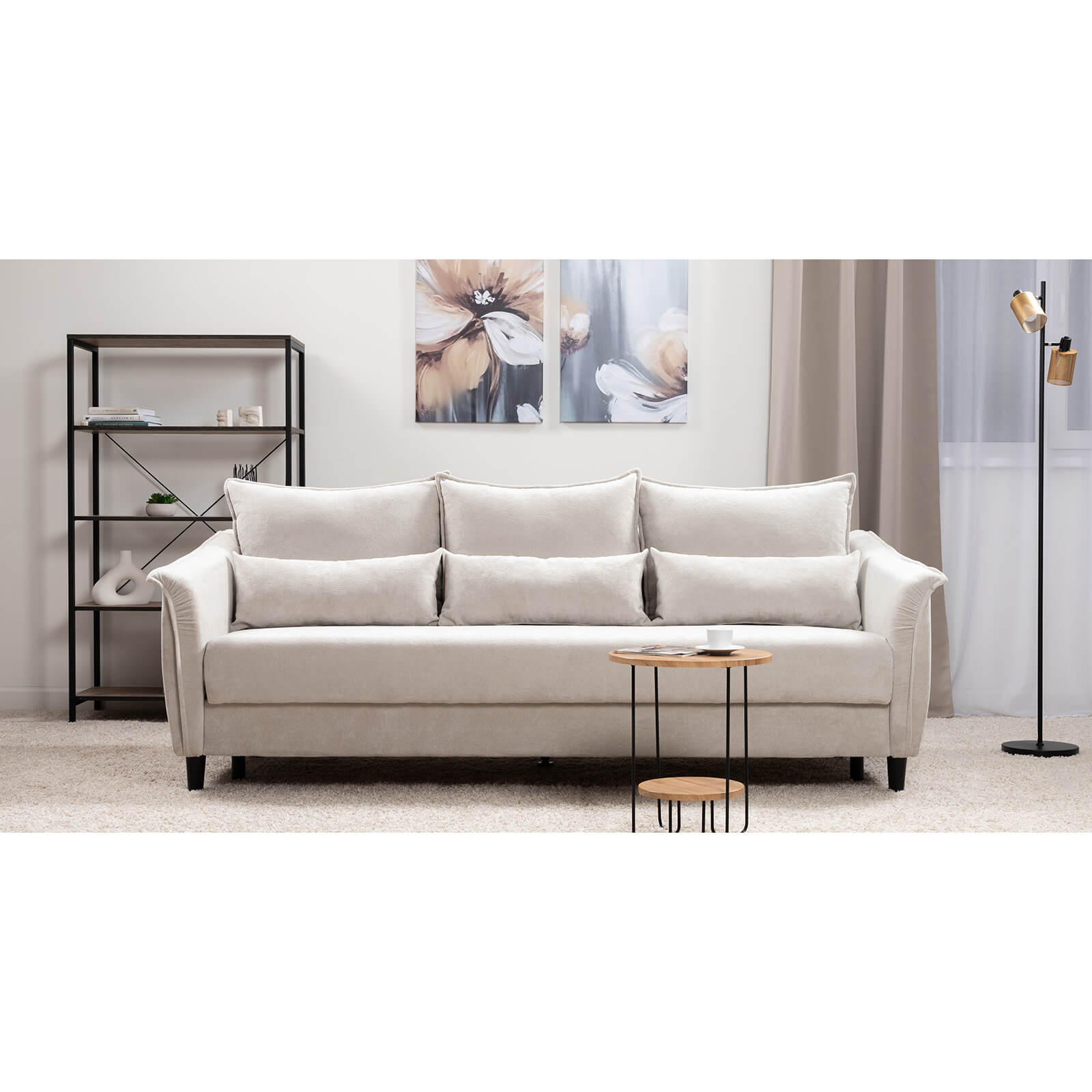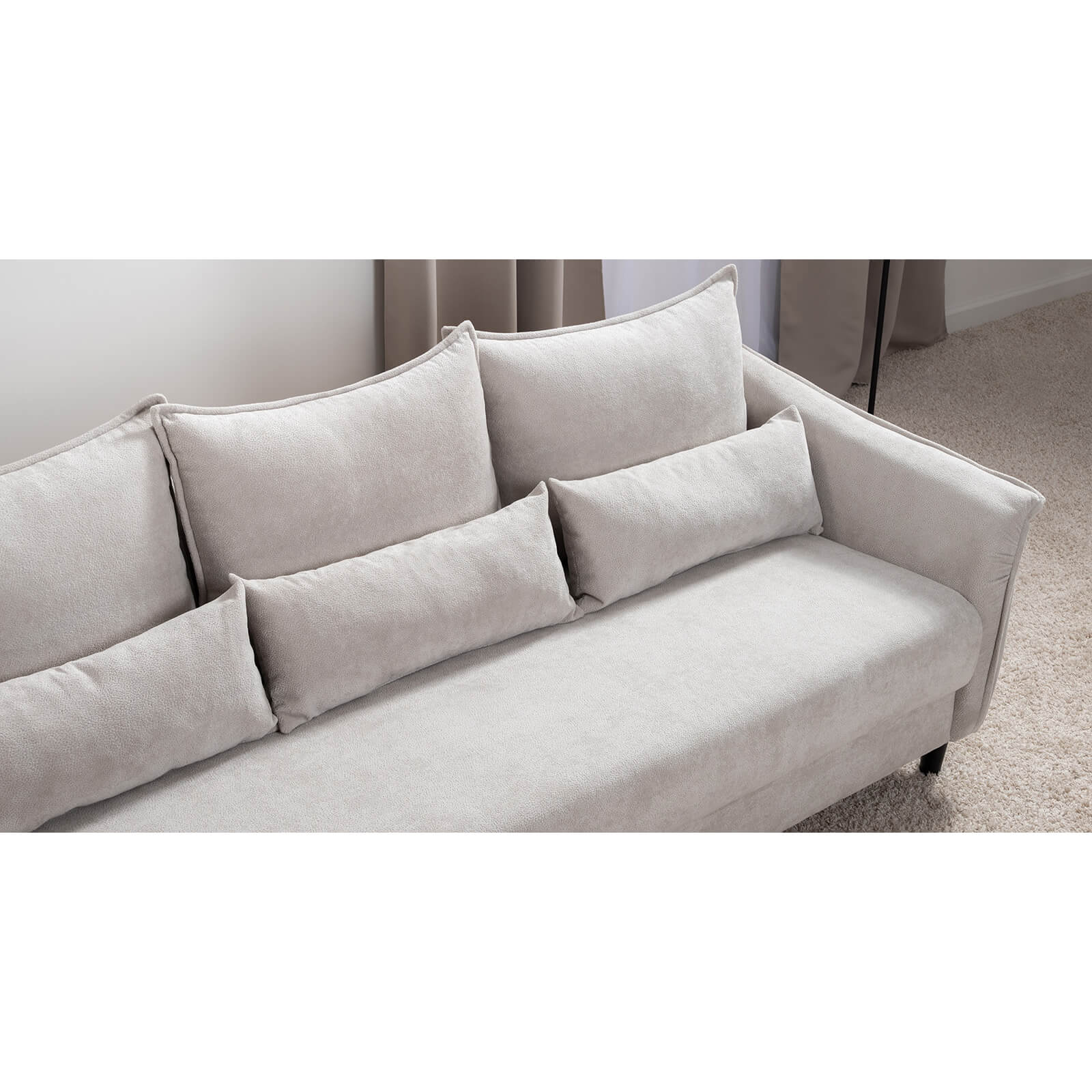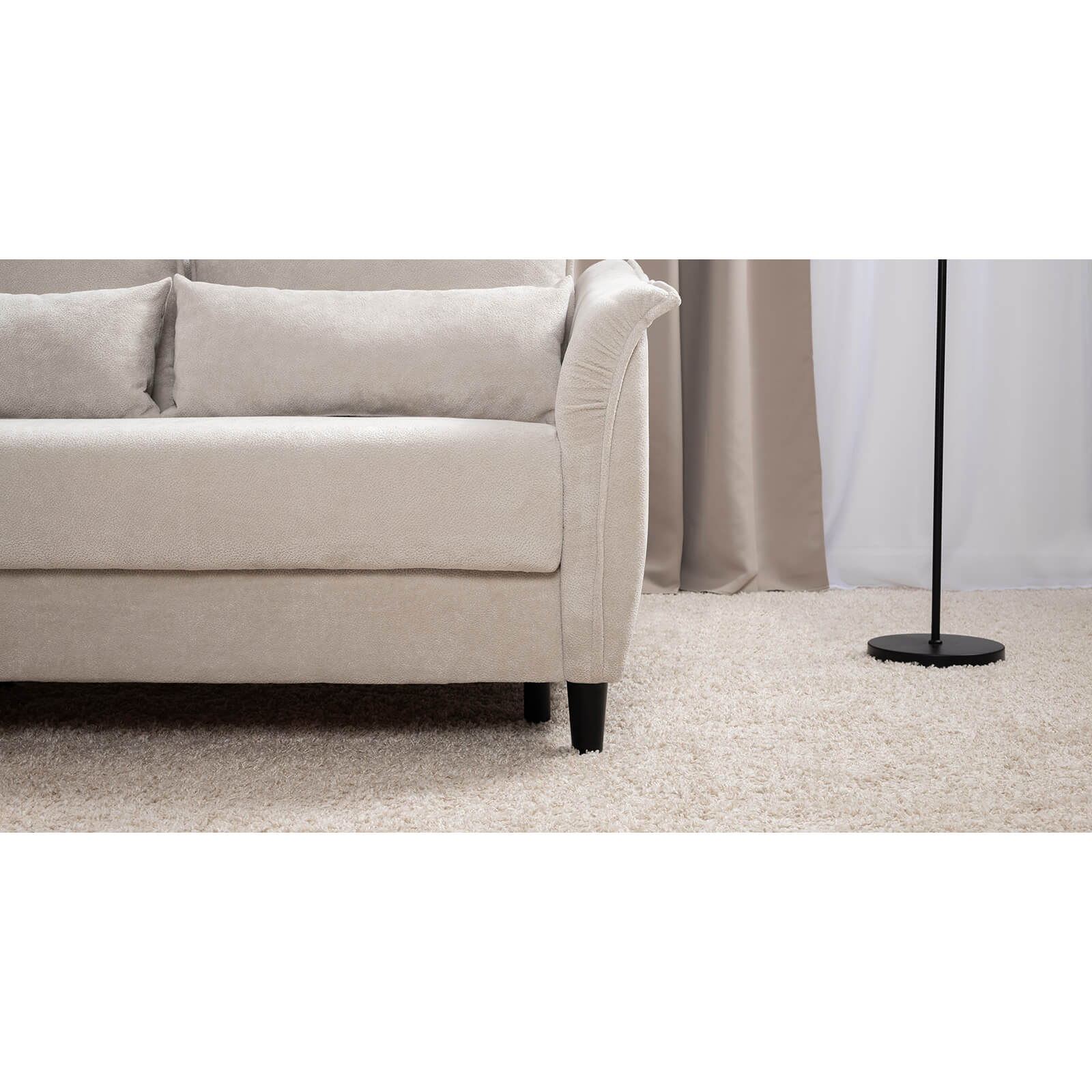 Изогнутые подлокотники в форме лепестков придают коллекции изысканный и элегантный вид, а дополнительные декоративные подушки обеспечат поддержку поясницы и помогут уютно устроиться на диване. В наполнении дивана используется высокоэластичная пена, которая адаптируется к форме вашего тела и гарантирует максимальный комфорт во время отдыха.