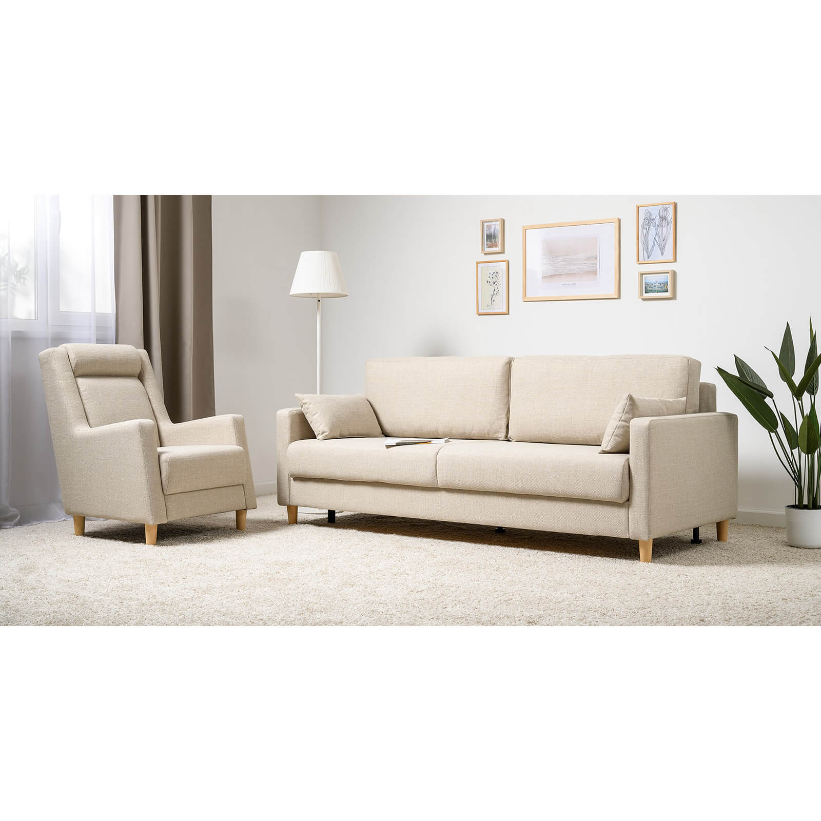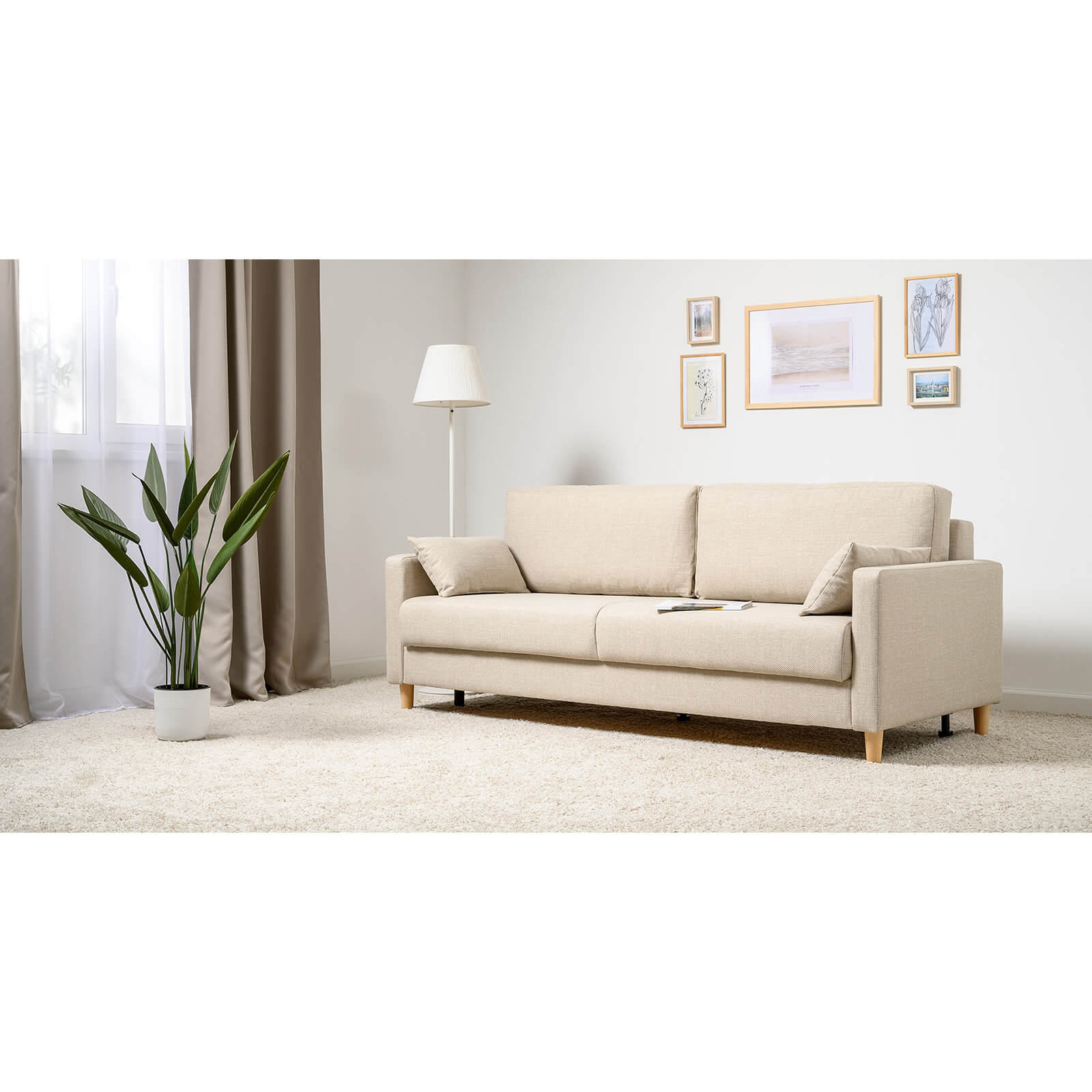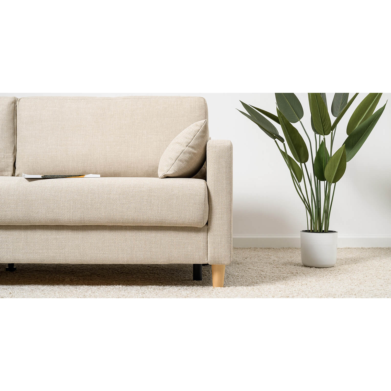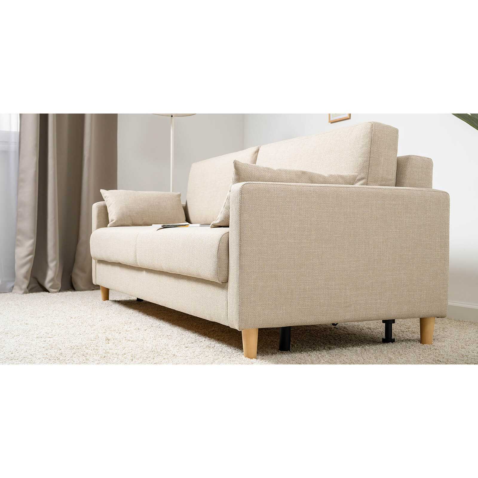 Комфорт: глубокая мягкая посадка дивана, удобные декоративные подушки, приятная на ощупь рогожка.
