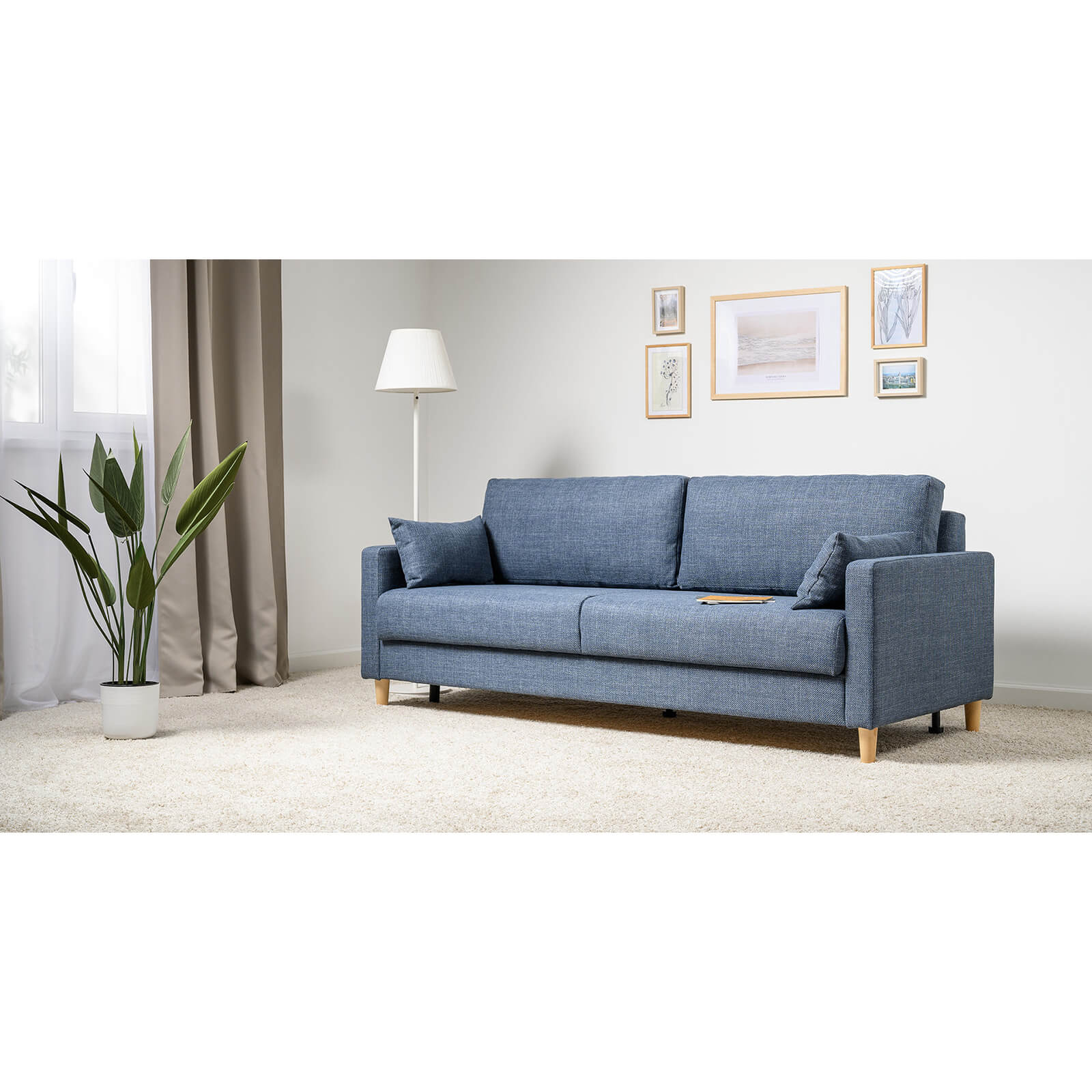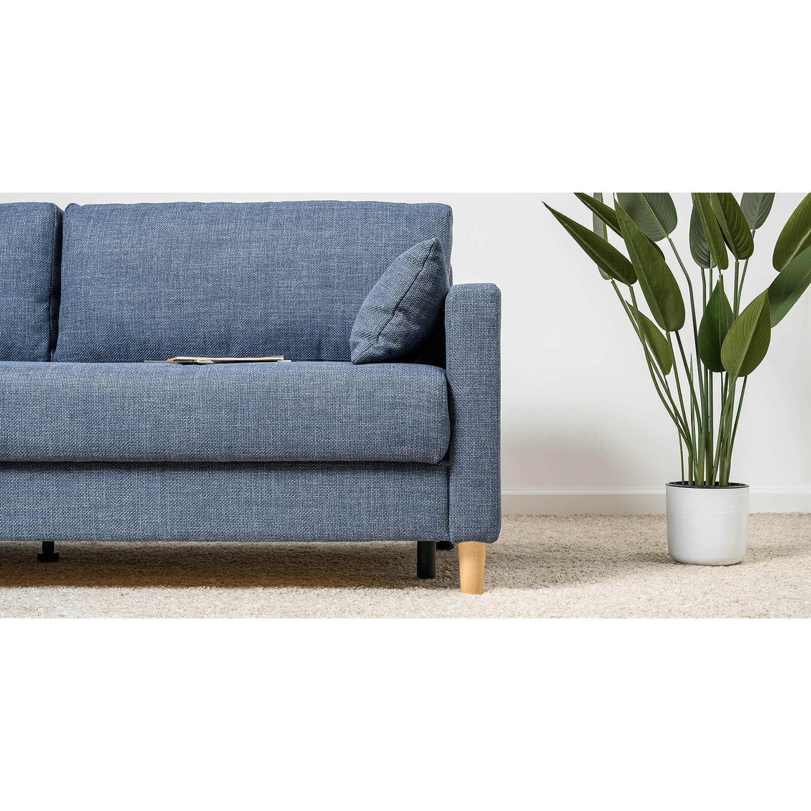 Комфорт: глубокая мягкая посадка дивана, удобные декоративные подушки, приятная на ощупь рогожка.