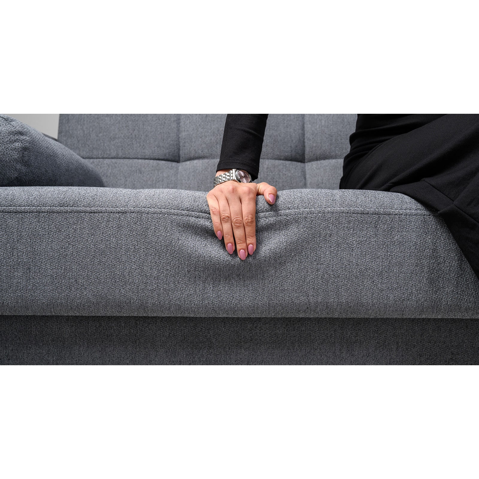 Декор: прямоугольная стежка по спинке, посадочному месту и подлокотниках, круглые подушки-валики.