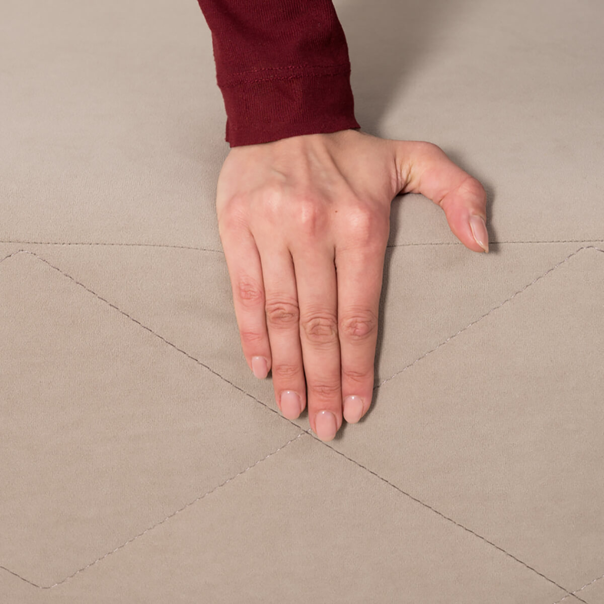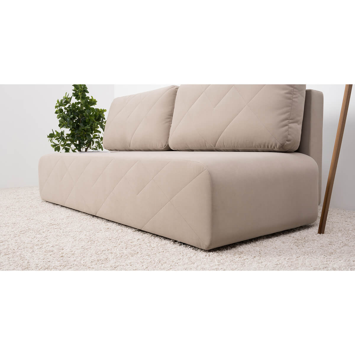 Декор: По передней части приспинных подушек и по передней части дивана проходит оригинальная стежка из диагональных строчек. Закругленные углы корпуса подчеркивают мягкие линии изделия, создают ощущение уюта и безопасности, а также отлично сочетаются с общей концепцией лаконичного дизайна.
