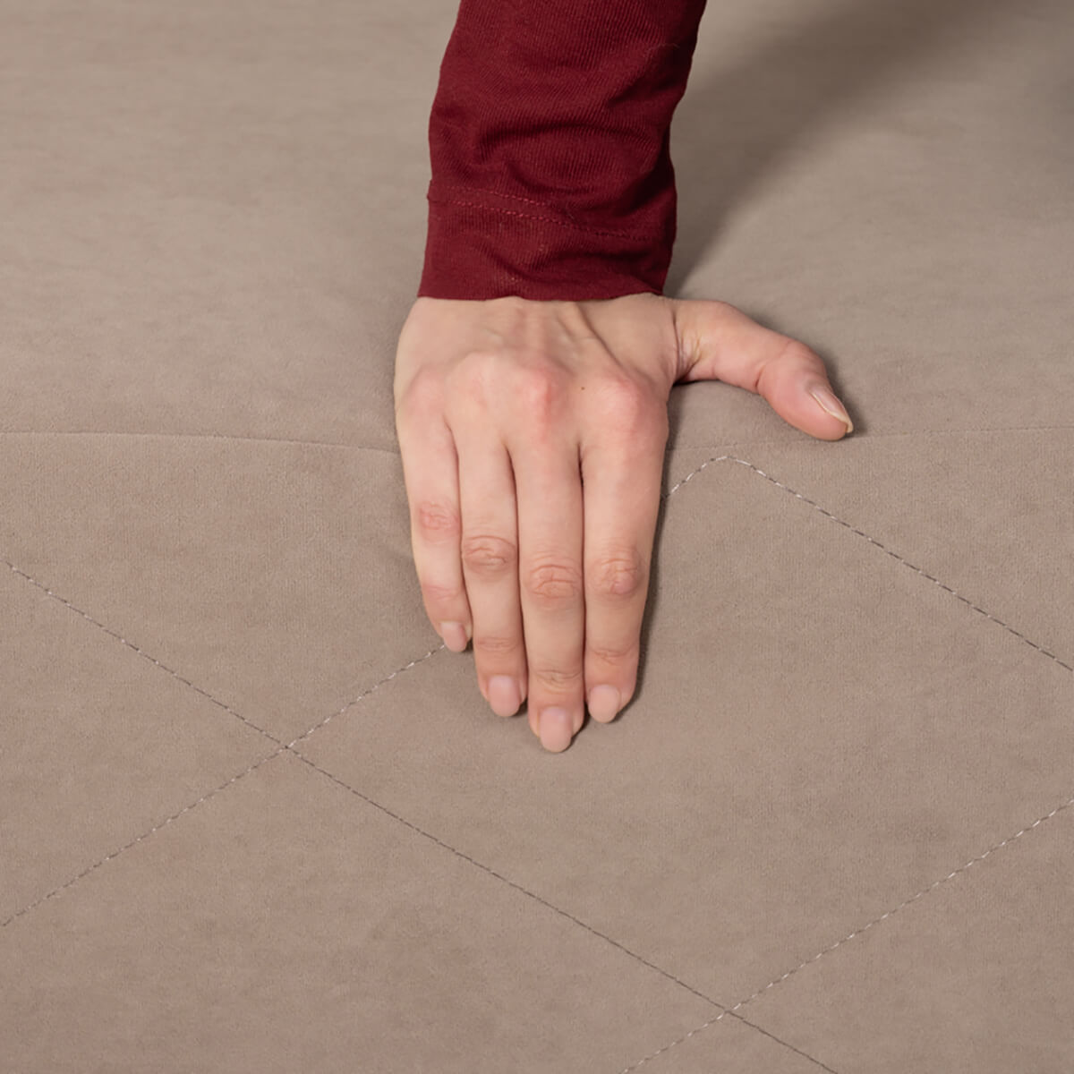 Декор: По передней части приспинных подушек и по передней части дивана проходит оригинальная стежка из диагональных строчек. Закругленные углы корпуса подчеркивают мягкие линии изделия, создают ощущение уюта и безопасности, а также отлично сочетаются с общей концепцией лаконичного дизайна.
