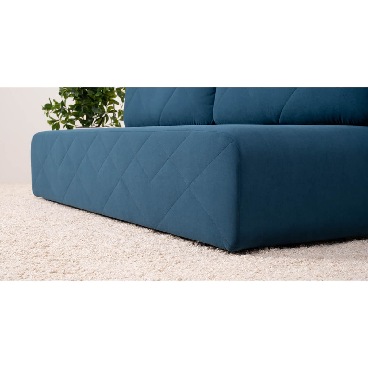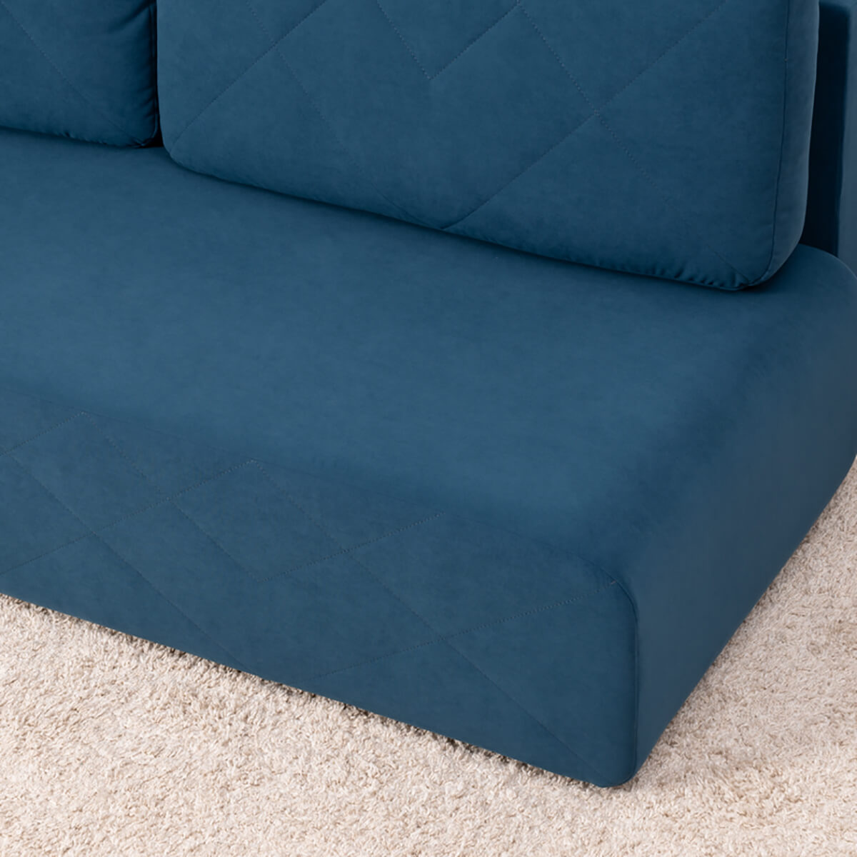 Декор: По передней части приспинных подушек и по передней части дивана проходит оригинальная стежка из диагональных строчек. Закругленные углы корпуса подчеркивают мягкие линии изделия, создают ощущение уюта и безопасности, а также отлично сочетаются с общей концепцией лаконичного дизайна.
