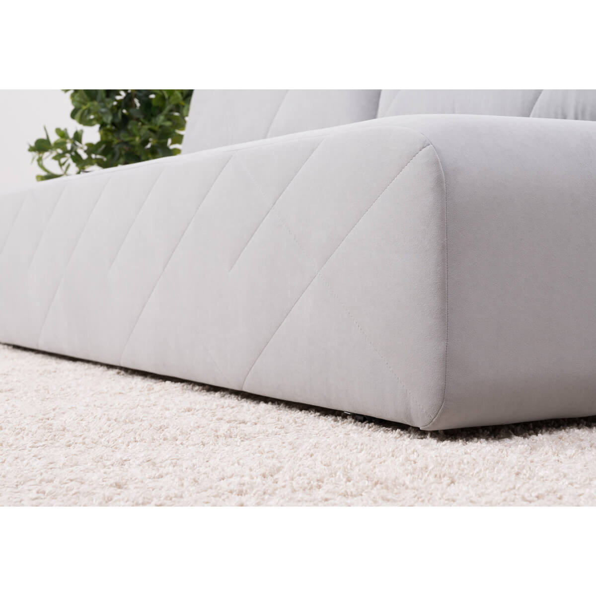 Декор: По передней части приспинных подушек и по передней части дивана проходит оригинальная стежка из диагональных строчек. Закругленные углы корпуса подчеркивают мягкие линии изделия, создают ощущение уюта и безопасности, а также отлично сочетаются с общей концепцией лаконичного дизайна.