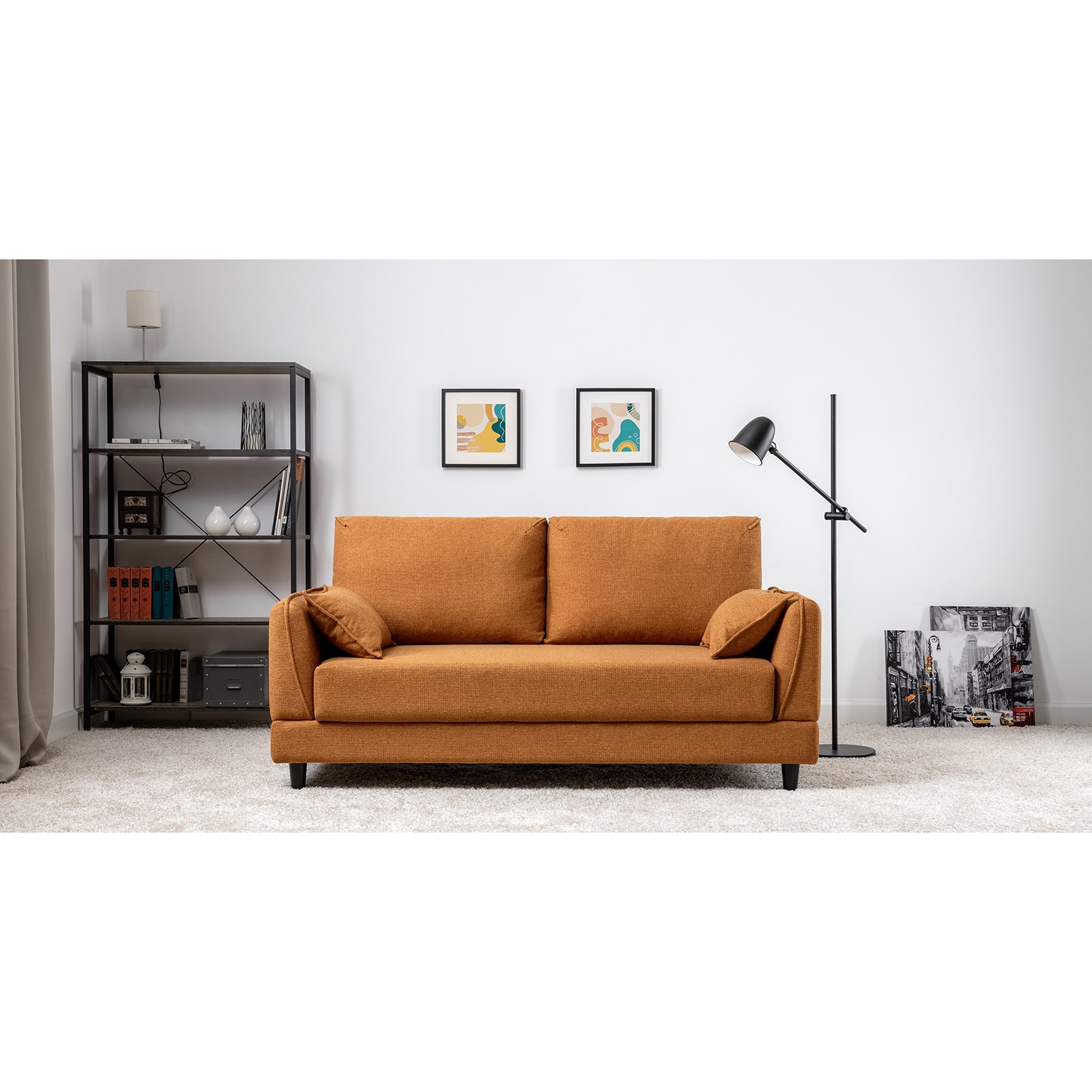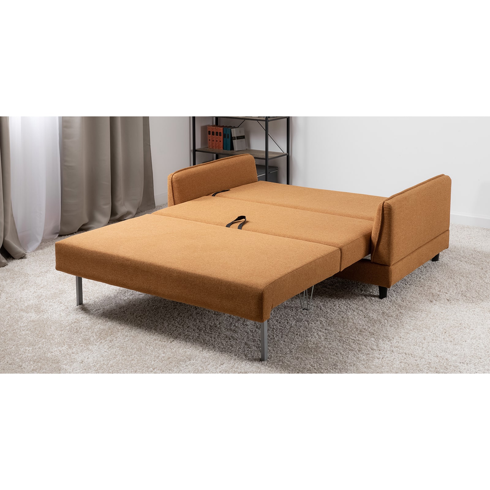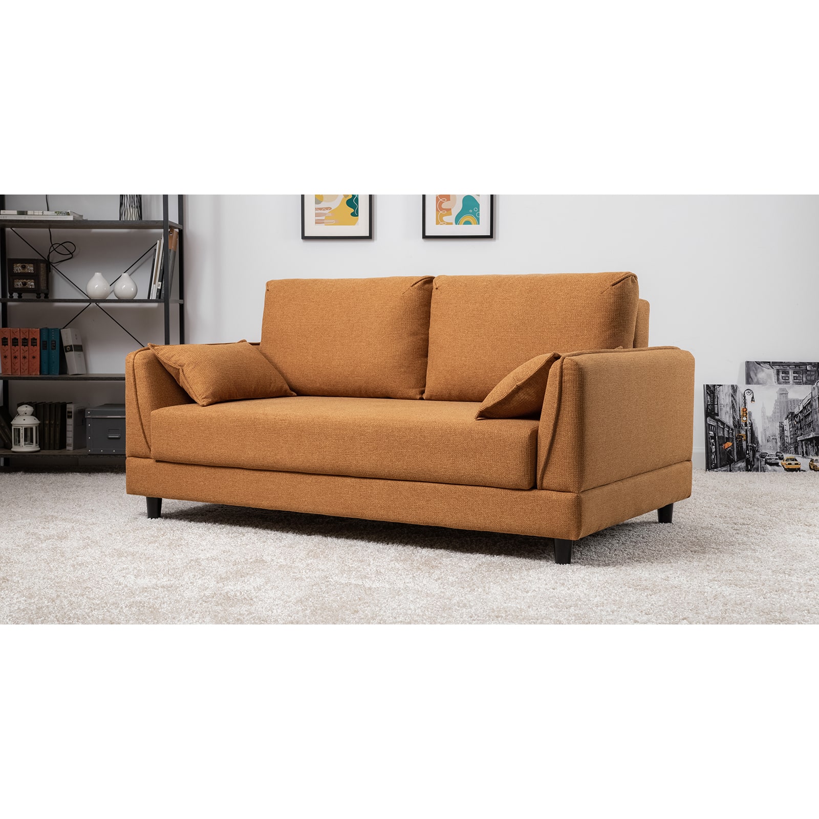 Лаконичный дизайн с деревянными ножками и узкими подлокотниками удачно дополнит не только интерьер гостиной, но и кабинета, и кухни. Кроме того, диван Макс позволяет организовать спальное место в ограниченном пространстве.