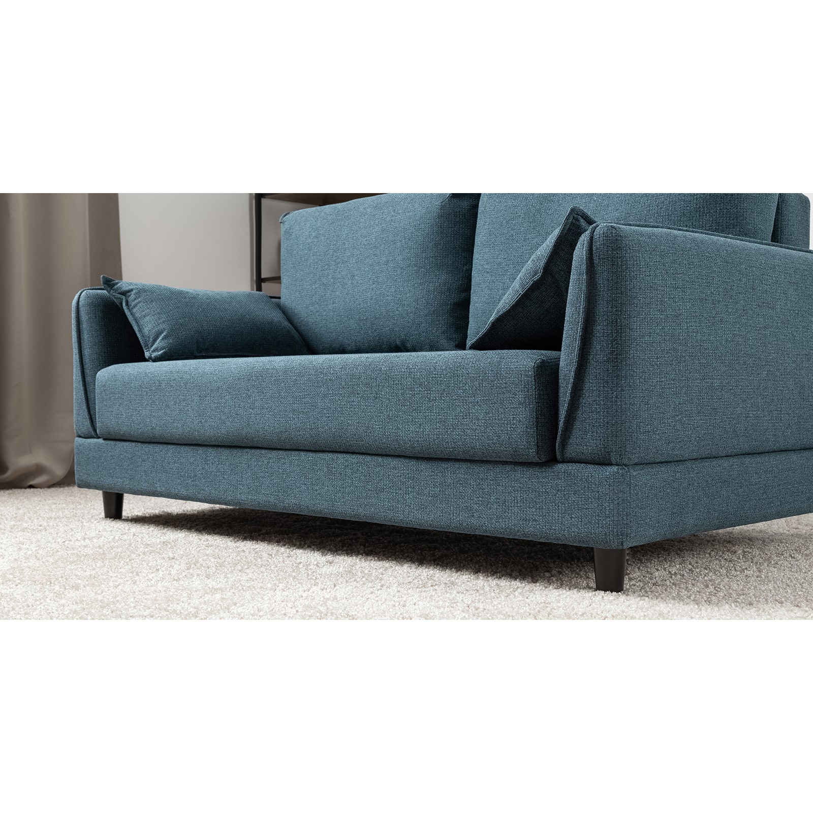 Лаконичный дизайн с деревянными ножками и узкими подлокотниками удачно дополнит не только интерьер гостиной, но и кабинета, и кухни. Кроме того, диван Макс позволяет организовать спальное место в ограниченном пространстве.