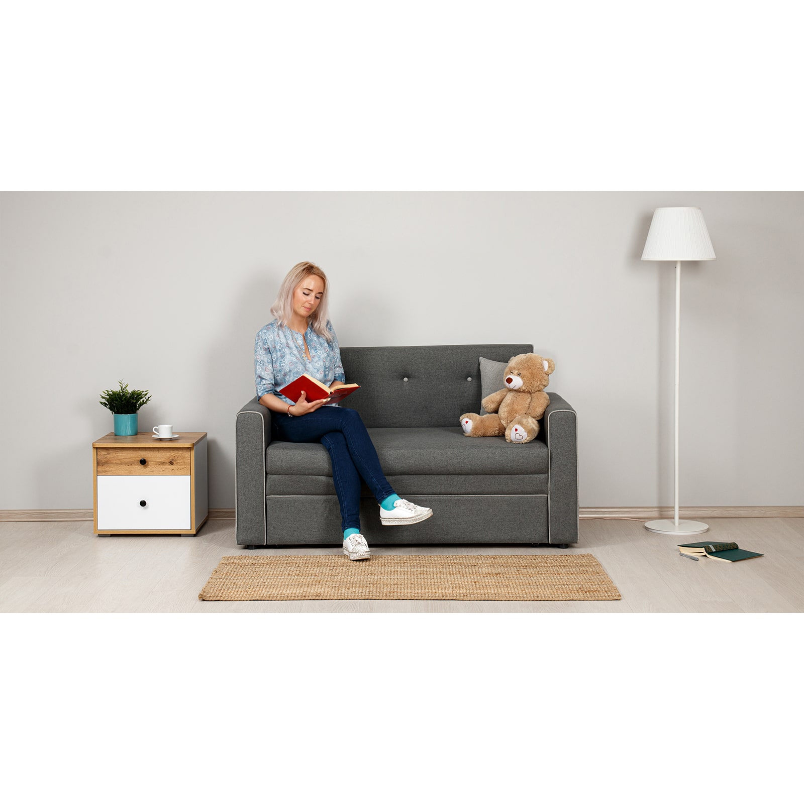 Диван-кровать "Найс" - компактное современное решение для гостиных, квартир-студий, детских и подростковых комнат. Может использоваться в качестве постоянного спального места для детей и подростков или гостевого спального места взрослого.