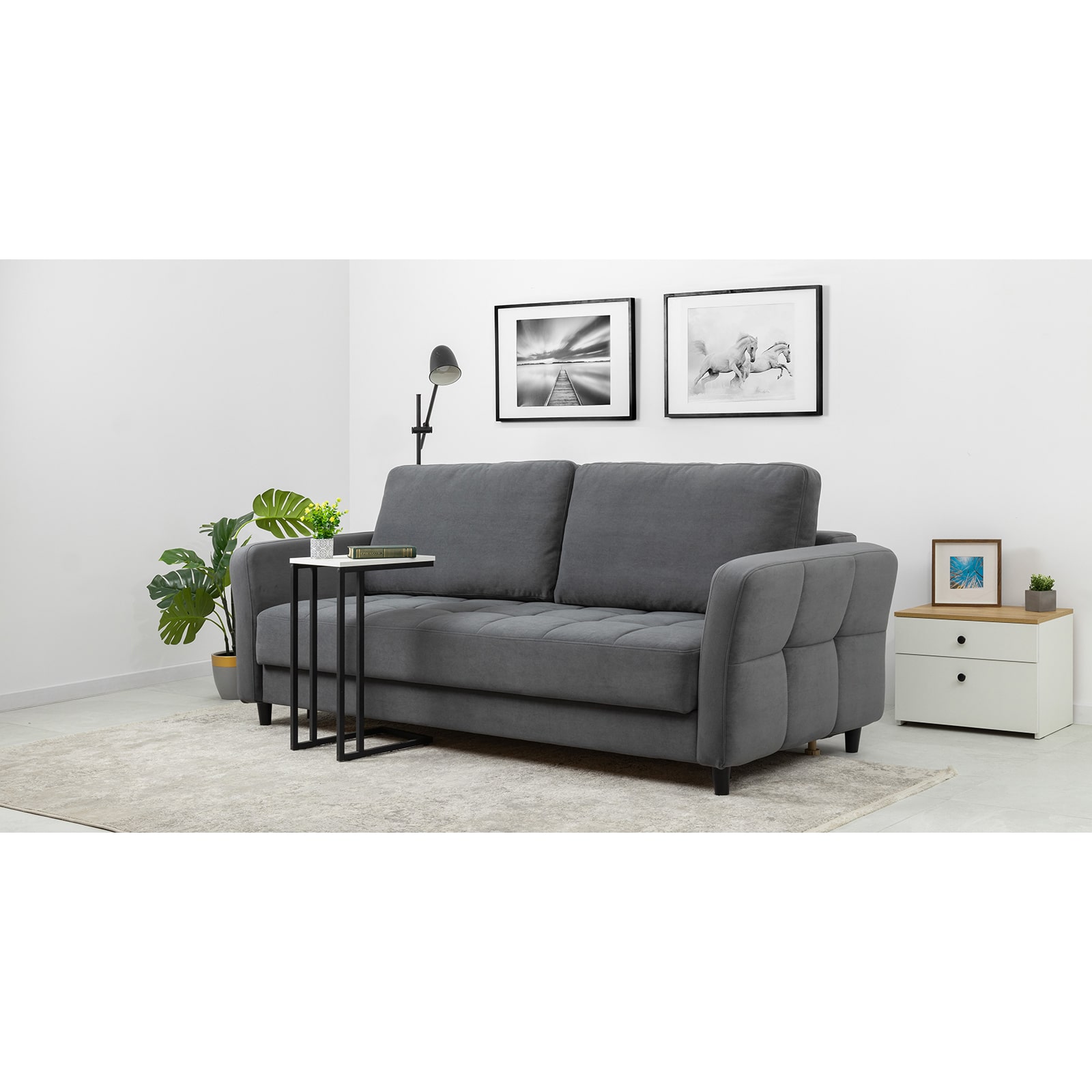 Благодаря сочетанию двух пружинных блоков в основании сиденья диван-кровать Невада будет радовать вас неизменным комфортом долгие годы. Объемная квадратная стежка подчеркивает мягкость. Выберите свой вариант обивки – акцентный или нейтральный.