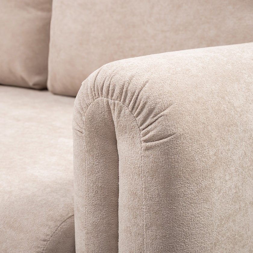 Декоративные утяжки и складки на подлокотниках придают дивану неповторимый шарм, который станет изюминкой любого интерьера — от классического до современного. Приспинные подушки со сборкой в верхней части.