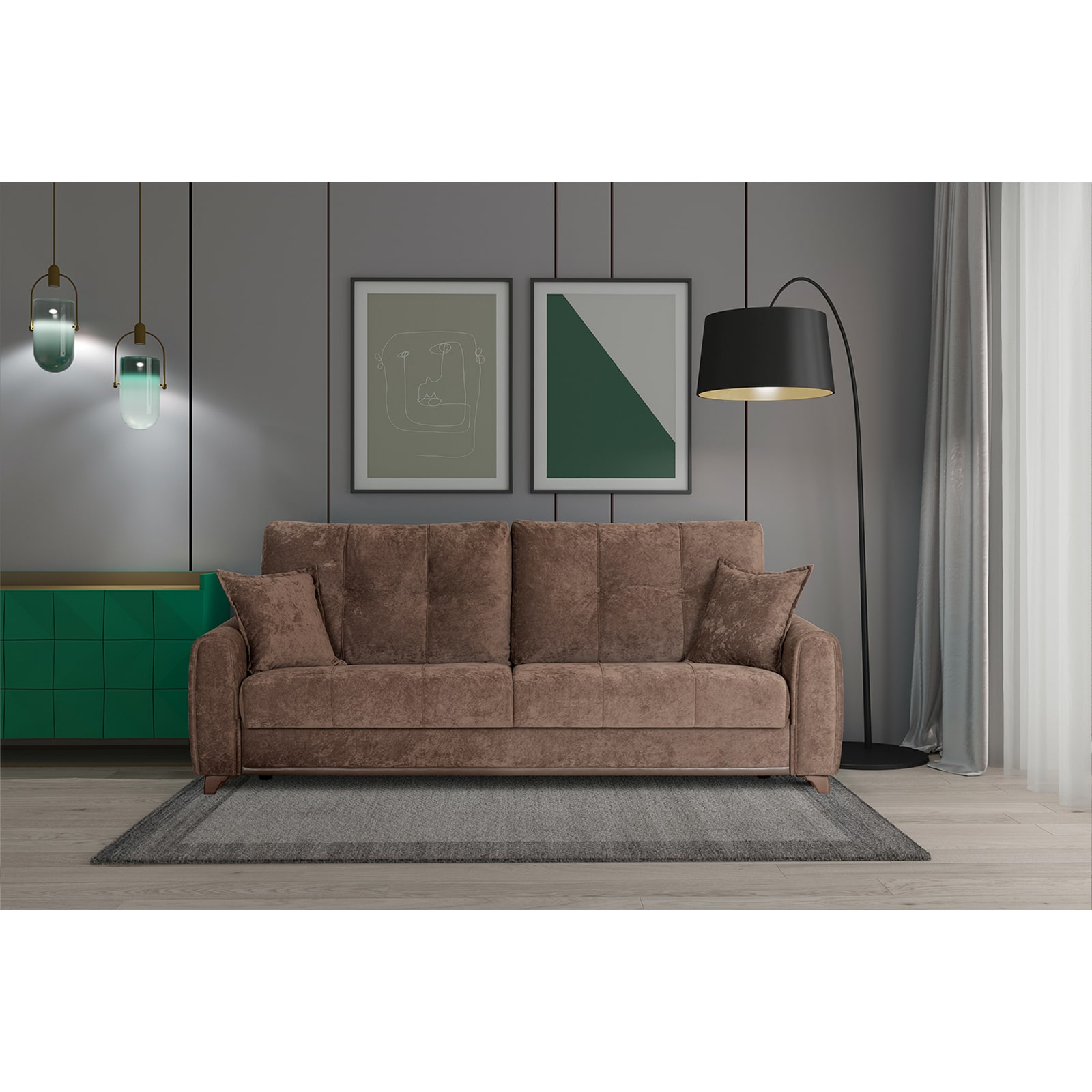 Плимут - современный диван с комфортной посадкой. Удачно впишется в любой современный интерьер благодаря универсальному дизайну и трендовым цветам обивки. При разложении не требует отодвигания от стены. Обеспечит полноценным ровным спальным местом двух человек.
