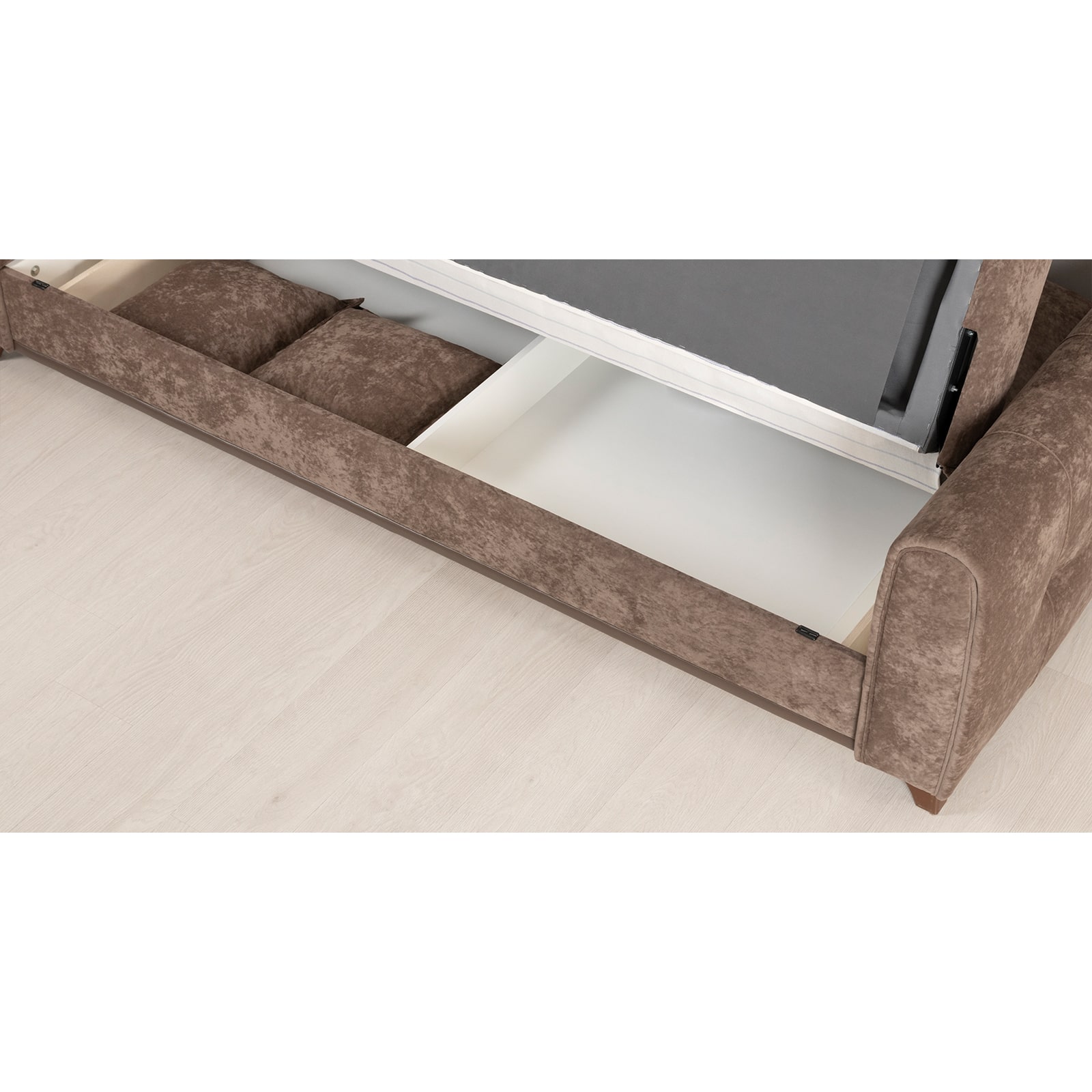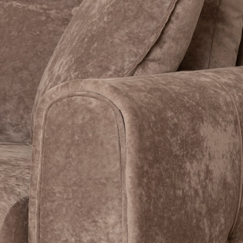 Выполнен в модном мягком велюре ROMANCE оригинальной фактуры. Ткань легко чистится, устойчива к зацепам, обладает повышенной износостойкостью. Благодаря особой технологии гладкого крашения Frozen Flower на поверхности ткани присутствует легкий краш–эффект, подчеркивающий невероятно мягкую фактуру ткани.