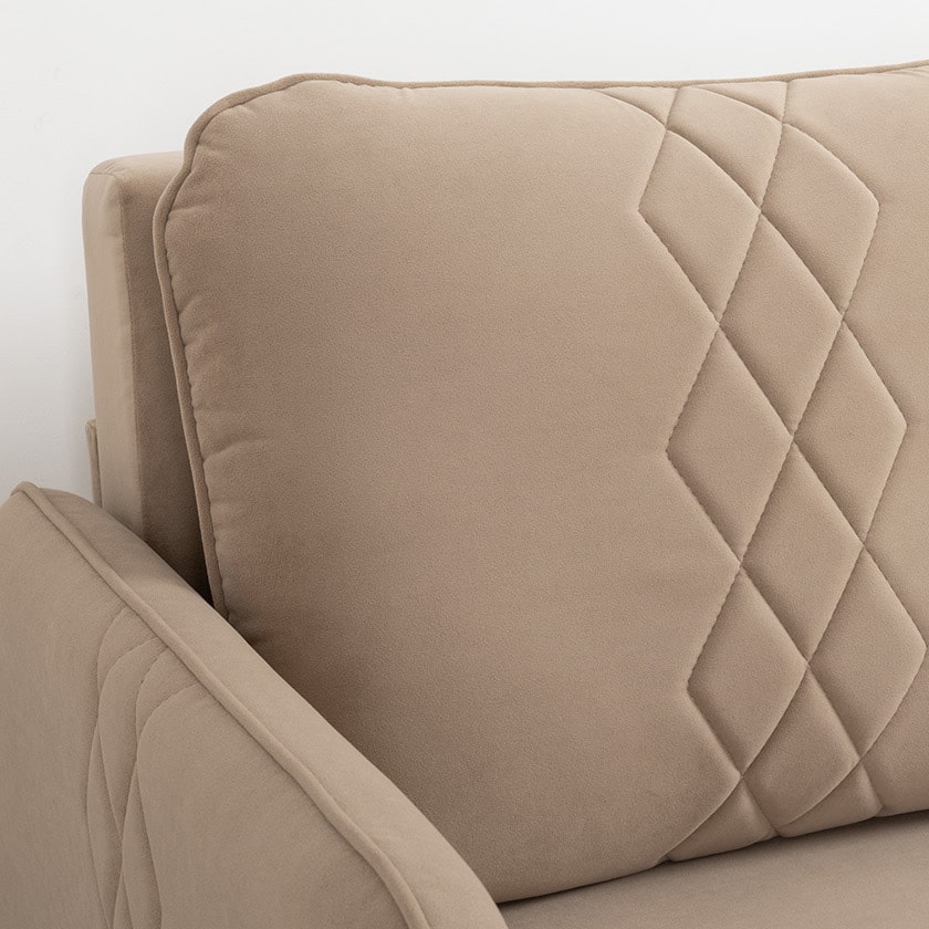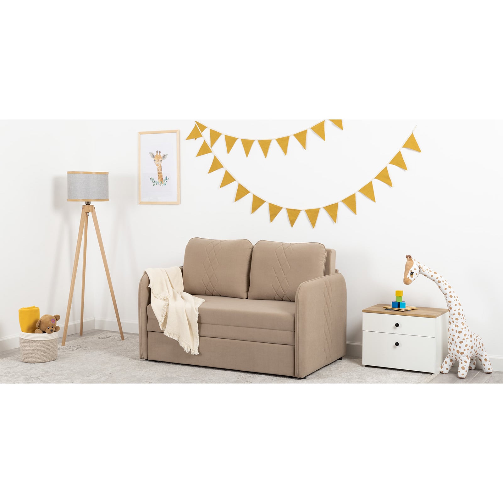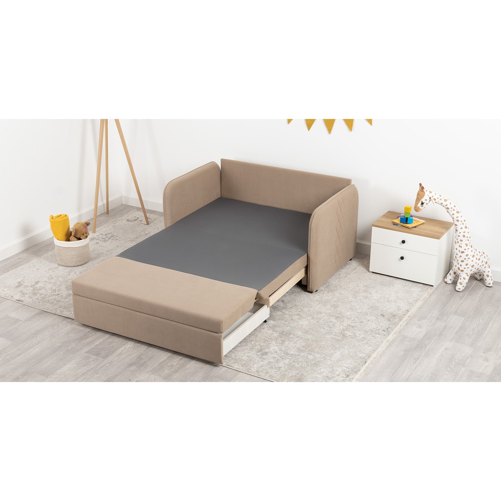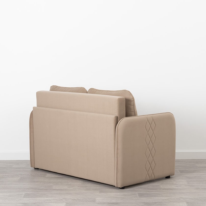 Стильный компактный диван для детской и гостиной. При своих скромных размерах он трансформируется в полноценное спальное место для детей и подростков. Лаконичный дизайн в виде декоративной отстрочки подчеркивает фактуру велюра, а небольшие размеры позволят разместить его в любом пространстве.
