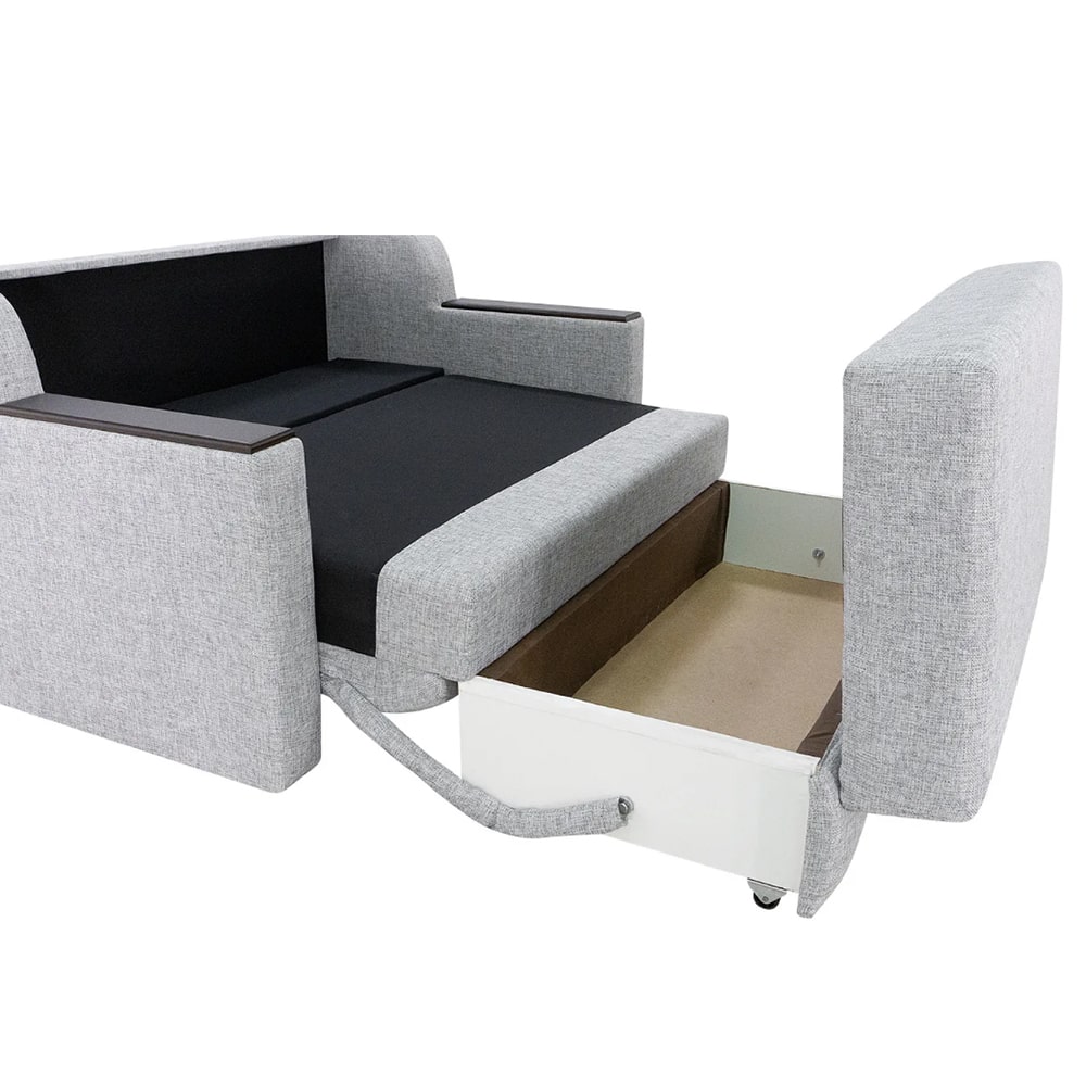 Модель очень удобная и практичная, легко раскладывается, образуя комфортное спальное место. Имеется отделение для хранения, где можно разместить постельное белье, подушки, пледы и другие вещи.