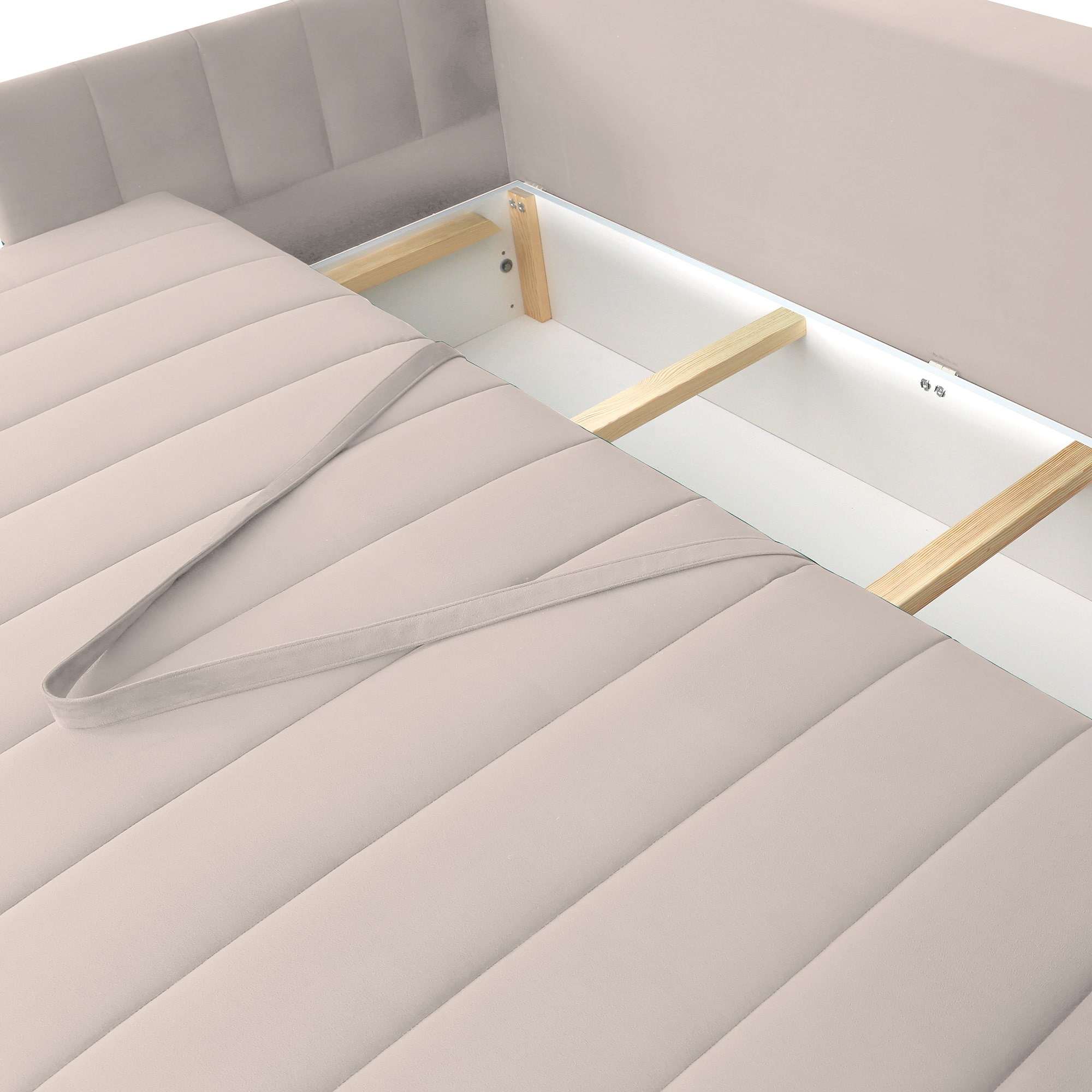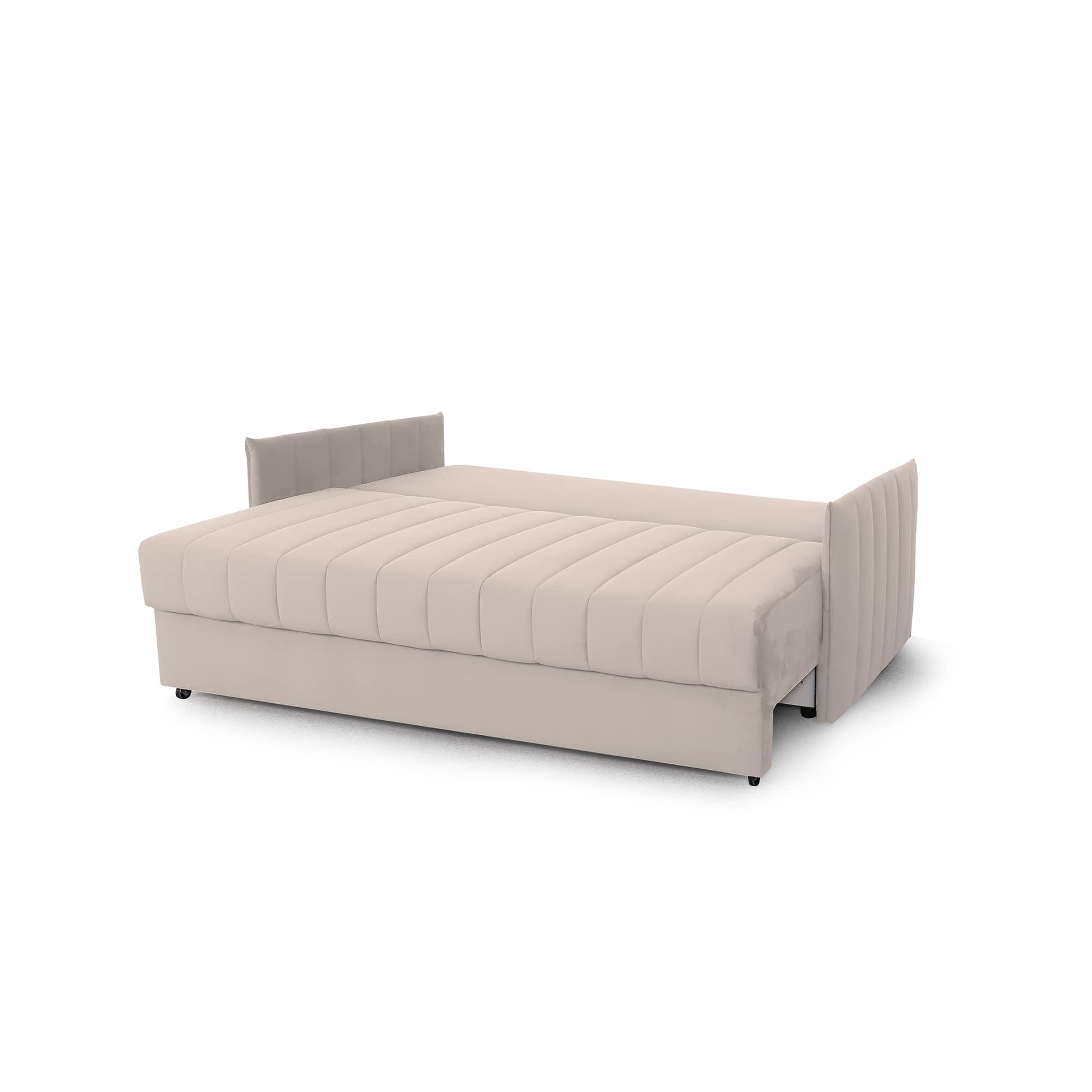 Диван удачно зонирует пространство и дополняет необходимым функционалом. В основании спального места блок независимых пружин для комфортного сна. Вместительный ящик для хранения постельных принадлежностей.