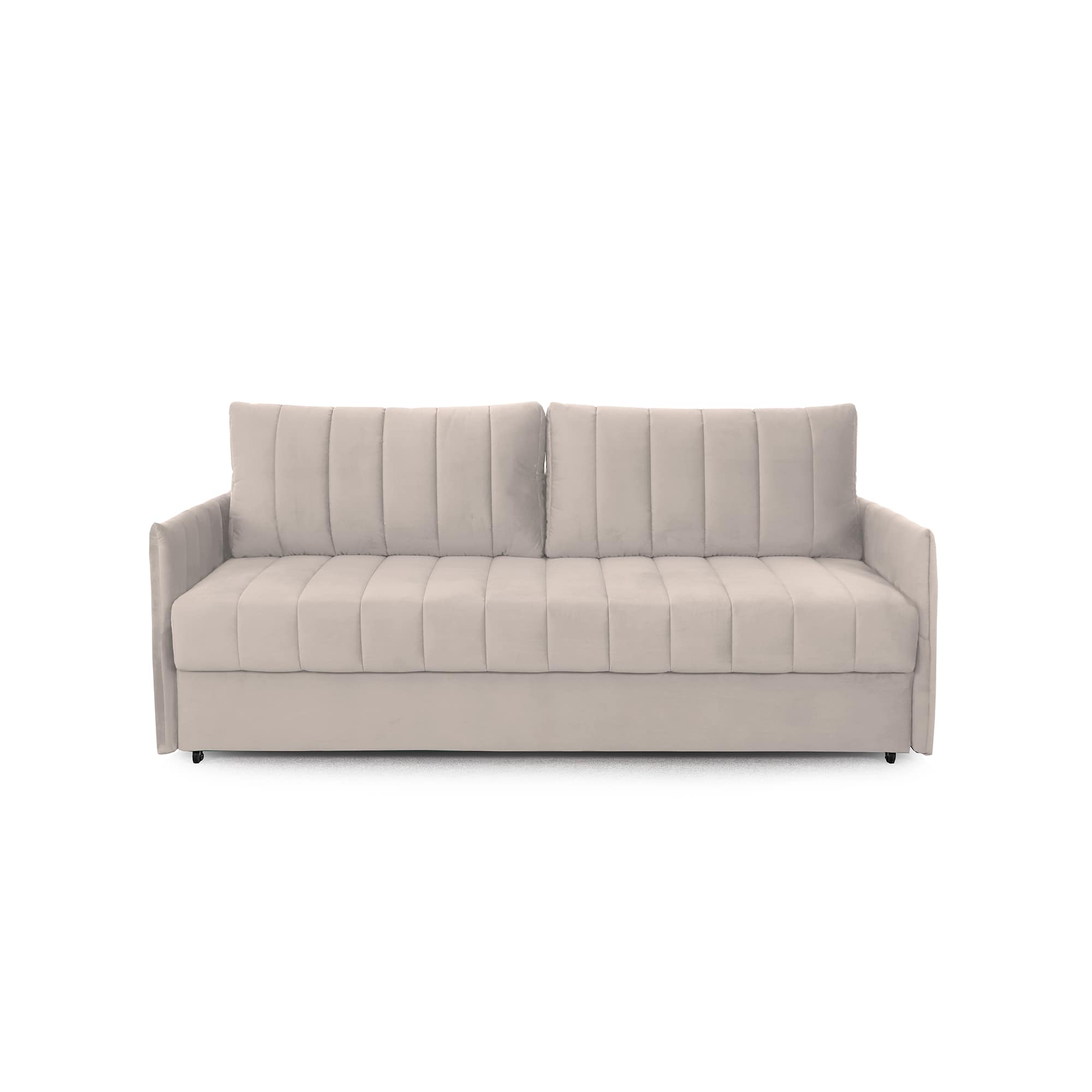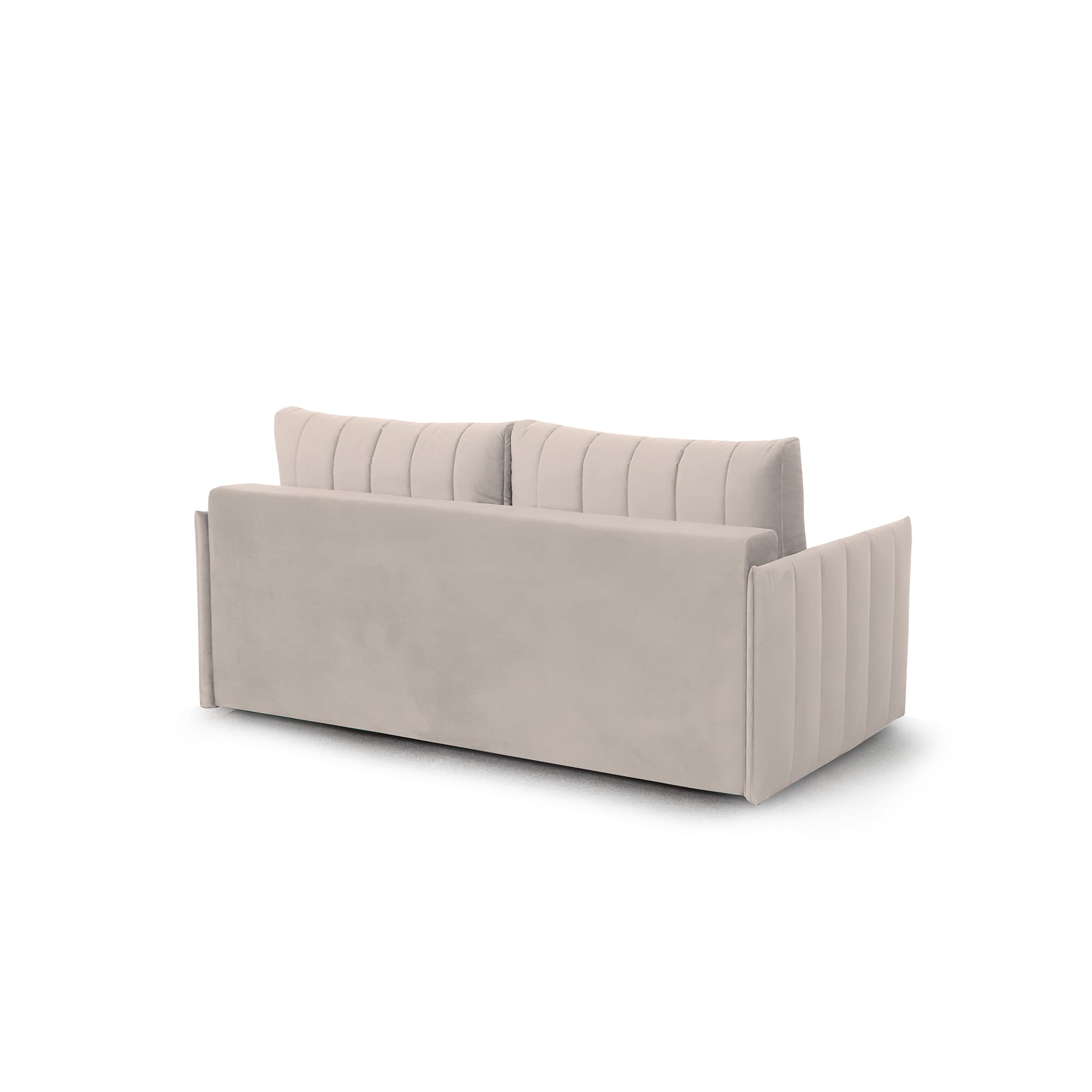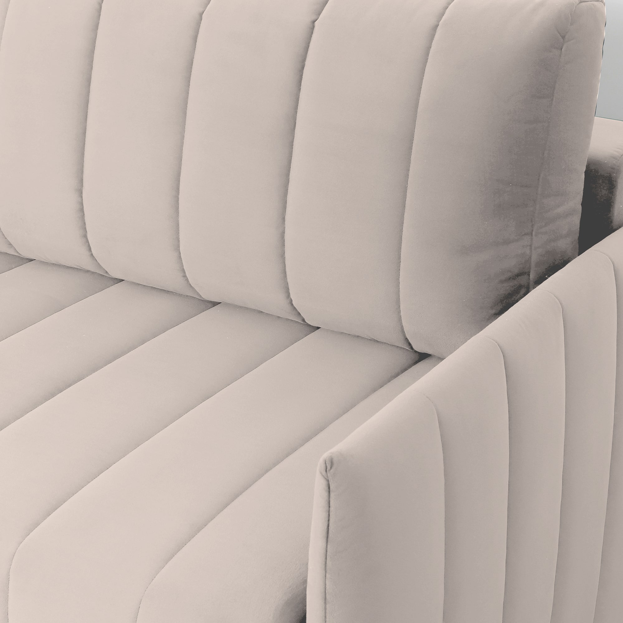 Подушки, сиденье и подлокотники дивана оформлены модной вертикальной стёжкой в современном стиле.