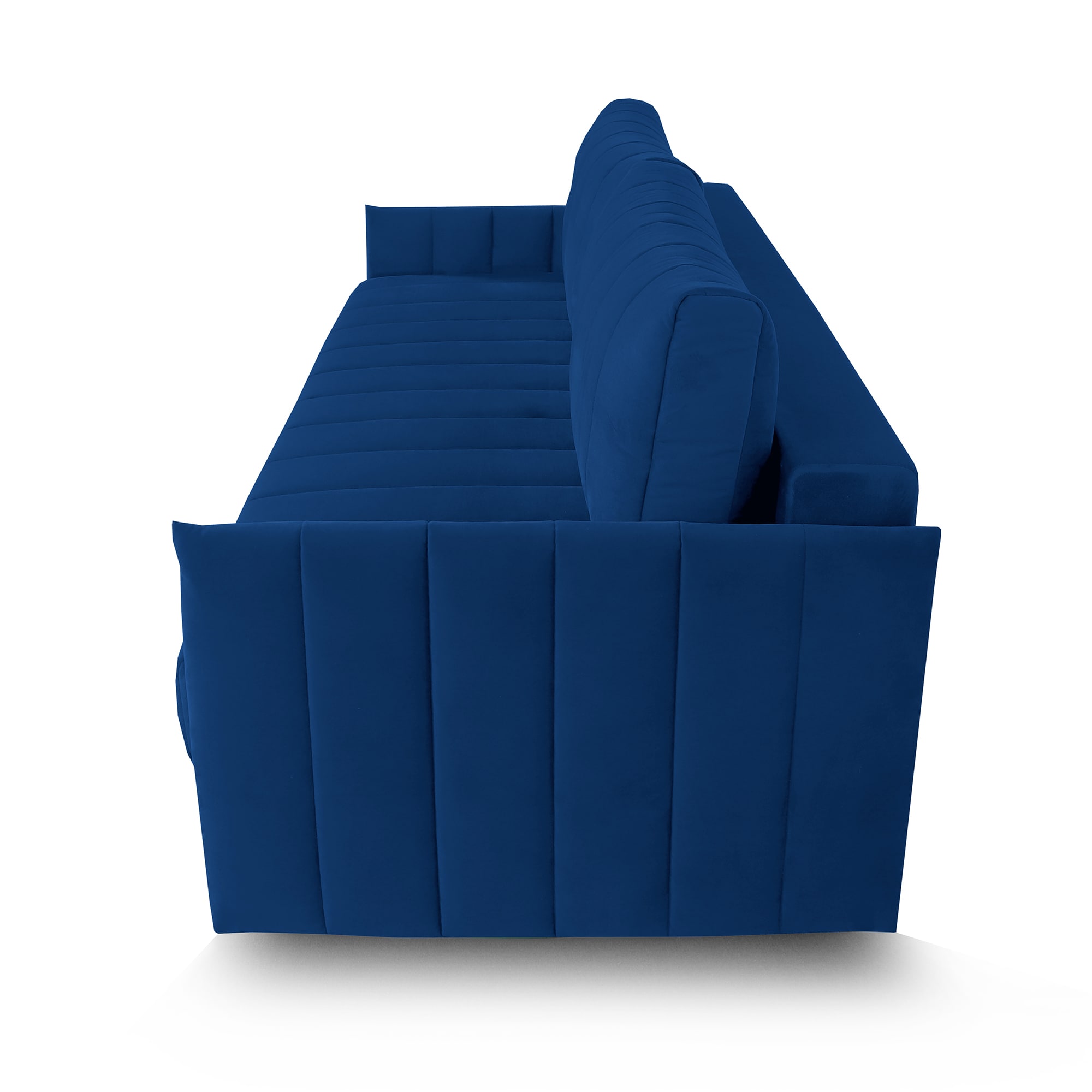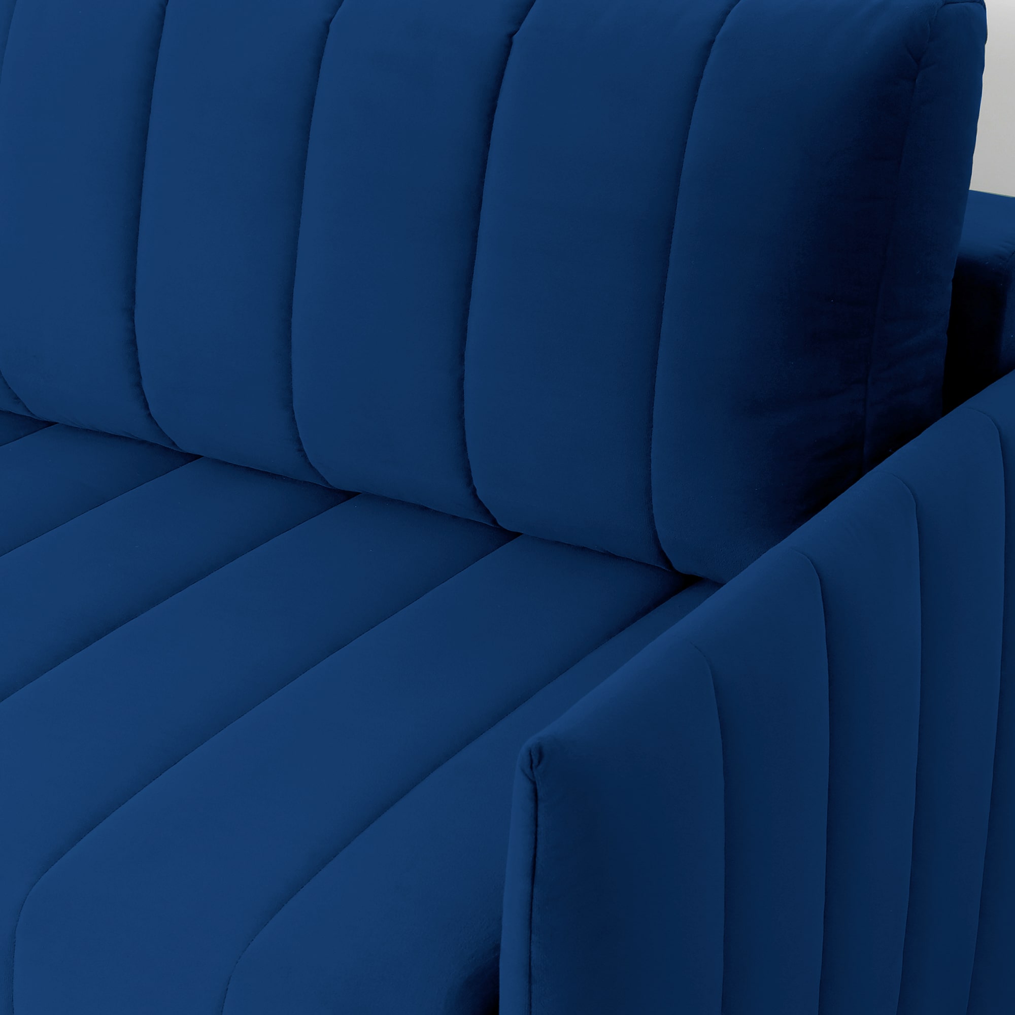 Подушки, сиденье и подлокотники дивана оформлены модной вертикальной стёжкой в современном стиле.