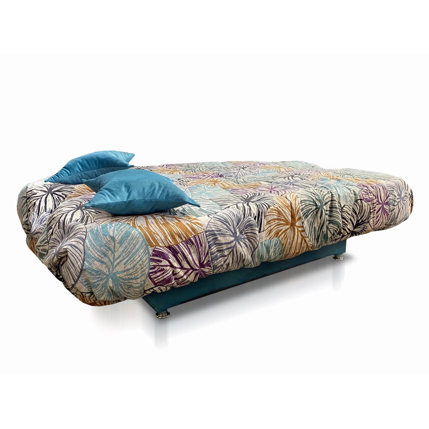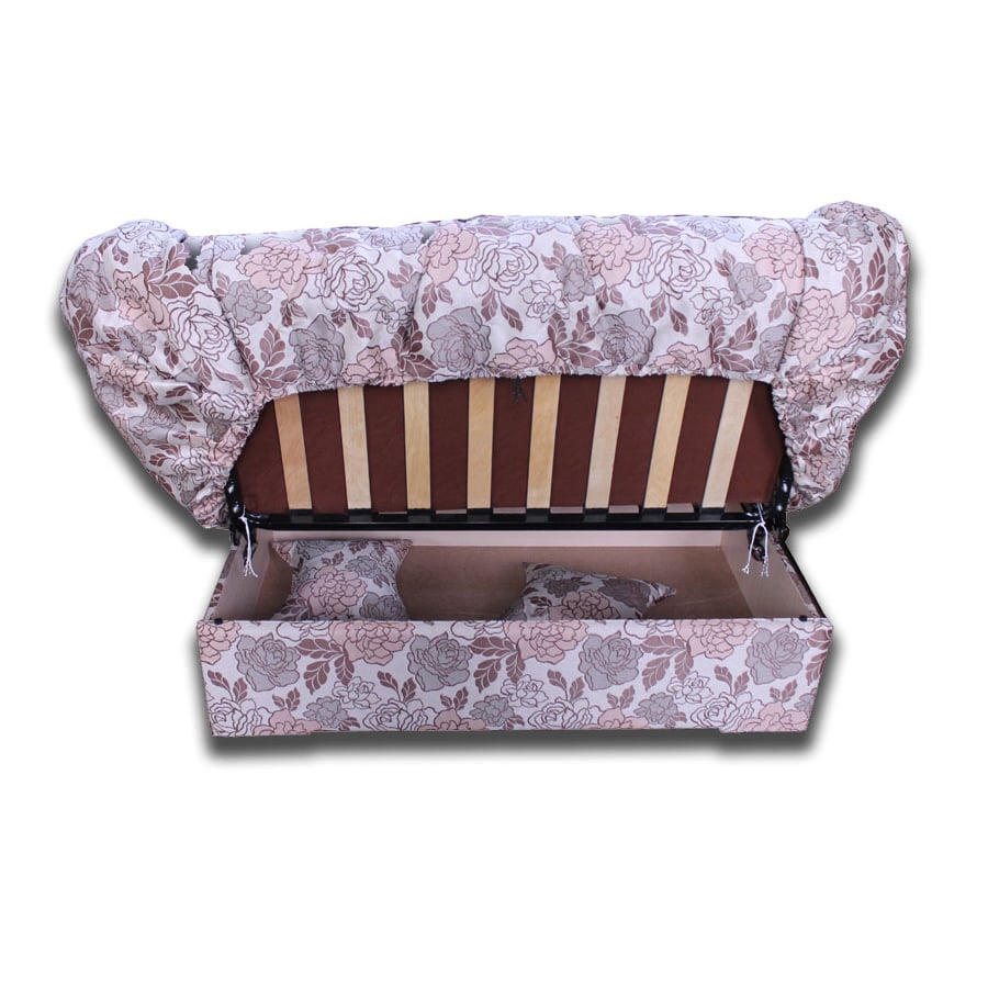 Удобный диван на металлокаркасе, глубокий ящик для белья, в комплекте две подушки.