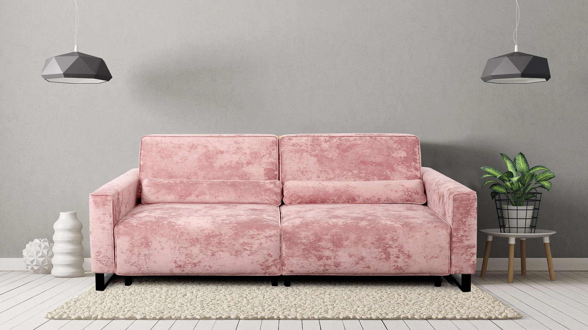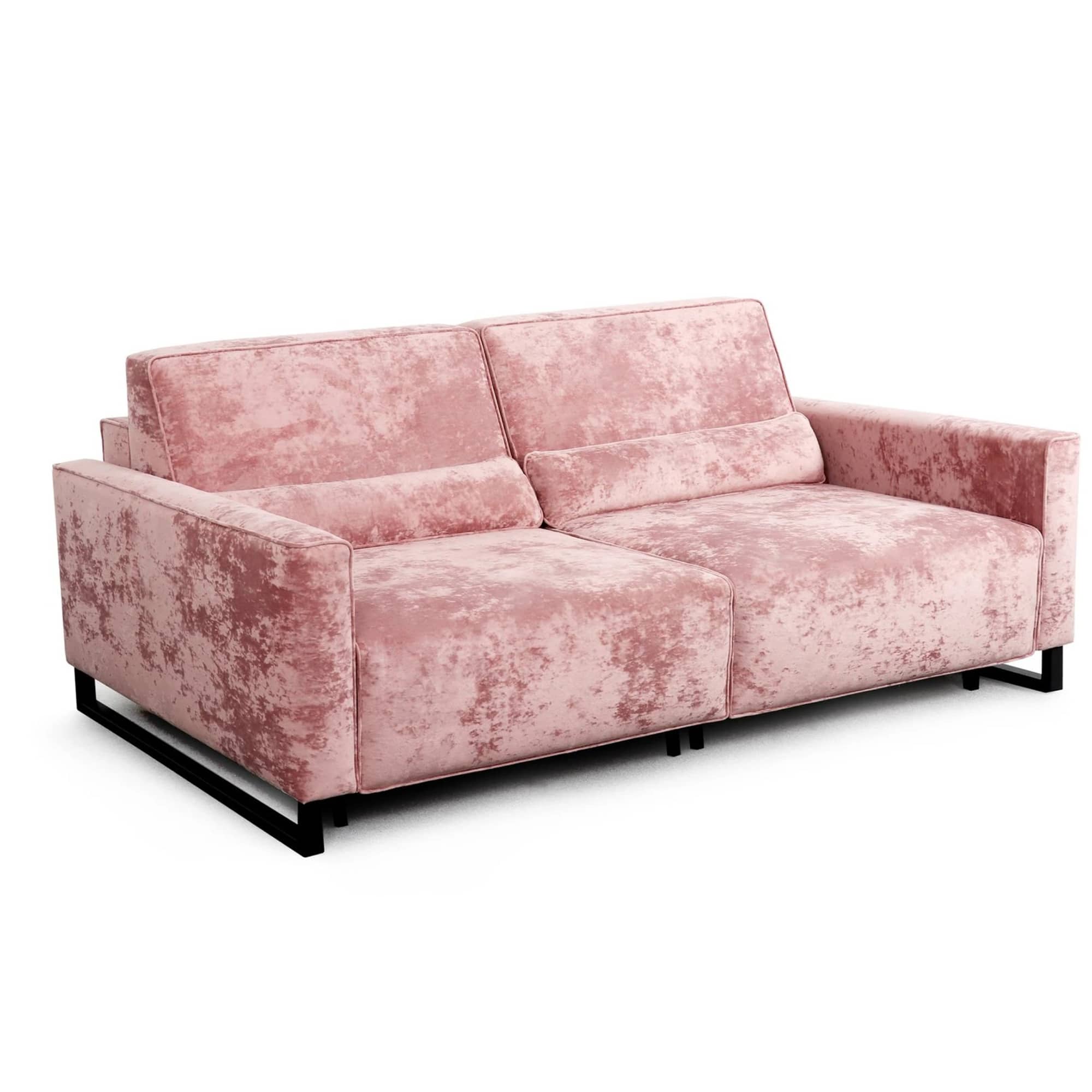 Обивка из велюра не только роскошно выглядит, но еще и практична в эксплуатации, а также имеет отличные показатели износоустойчивости. Высокие опоры из профильной стальной трубы придают дивану особую стилистику, декоративный кант придает изделию законченный вид, помогает сохранить форму и снижает нагрузку на чехол. Поясничные подушки являются дополнительной опорой и служат поддержкой для спины.