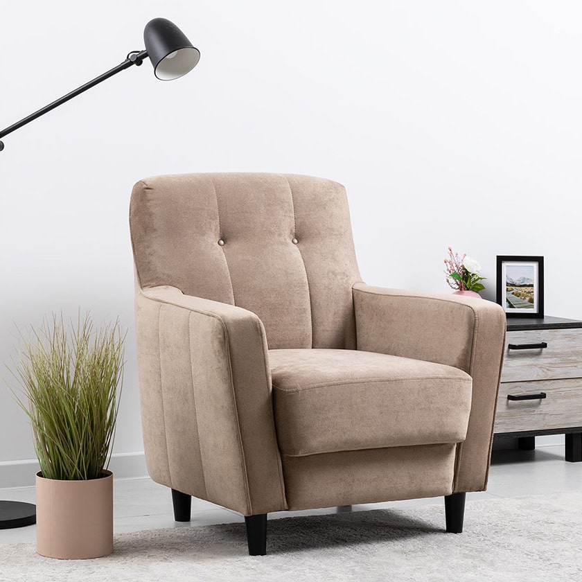 Лаконичное кресло АРНО с комфортной посадкой дополнит современный интерьер. Высокие ножки из массива делают кресло визуально лёгким и уместным в комнате любой площади, а задняя спинка в ткани основы позволит использовать его для зонирования пространства.