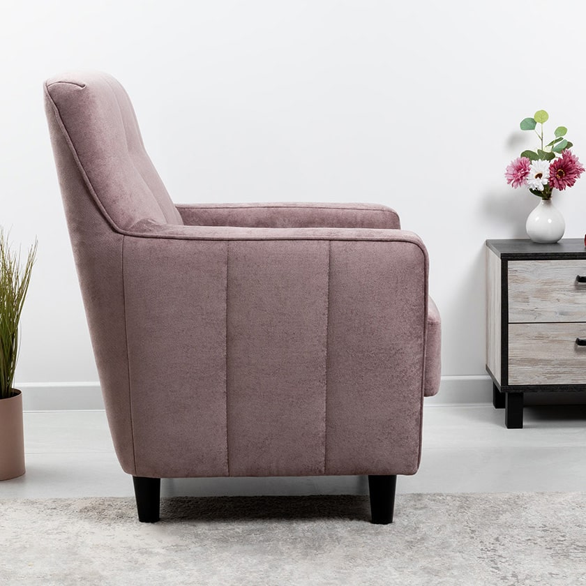 Лаконичное кресло АРНО с комфортной посадкой дополнит современный интерьер. Высокие ножки из массива делают кресло визуально лёгким и уместным в комнате любой площади, а задняя спинка в ткани основы позволит использовать его для зонирования пространства.