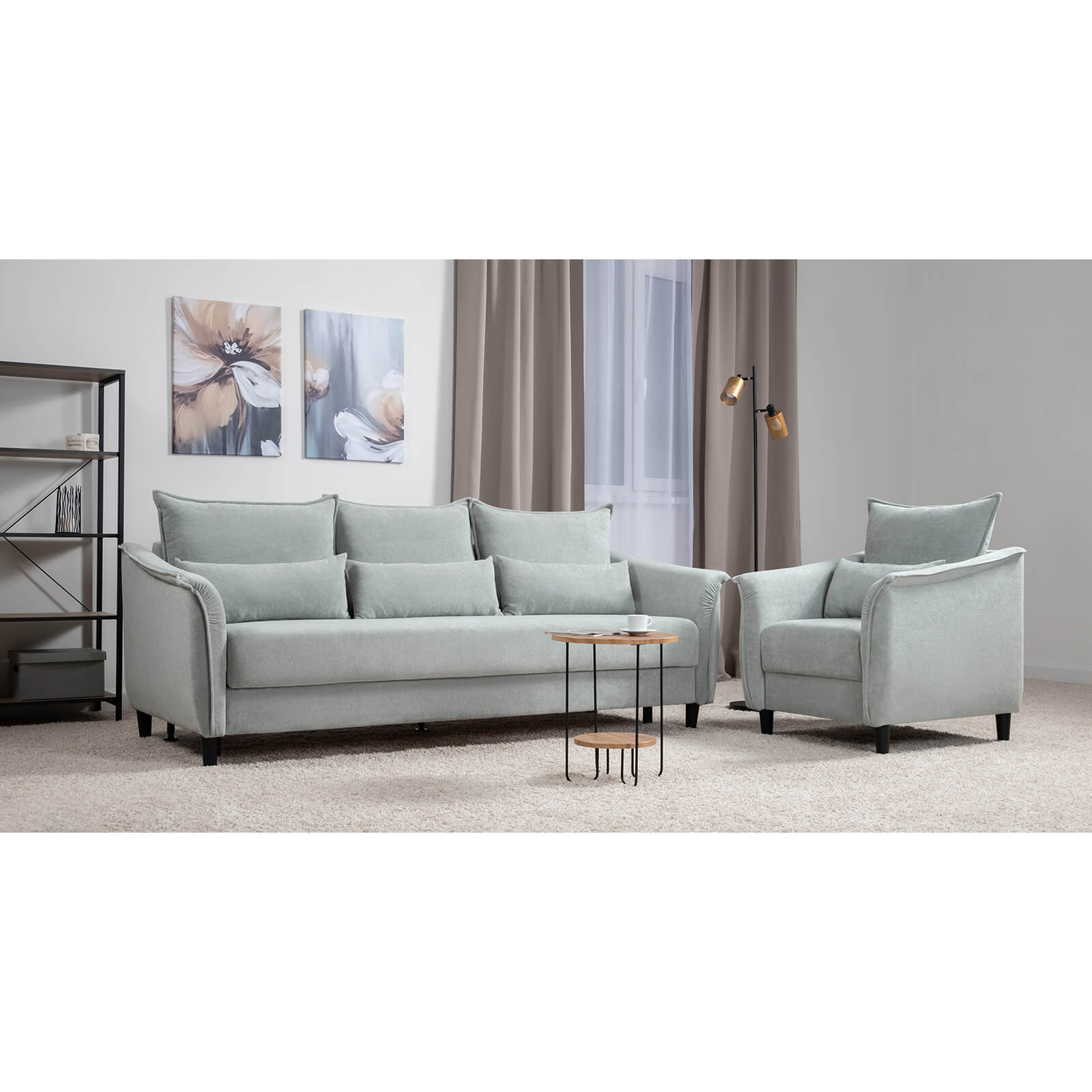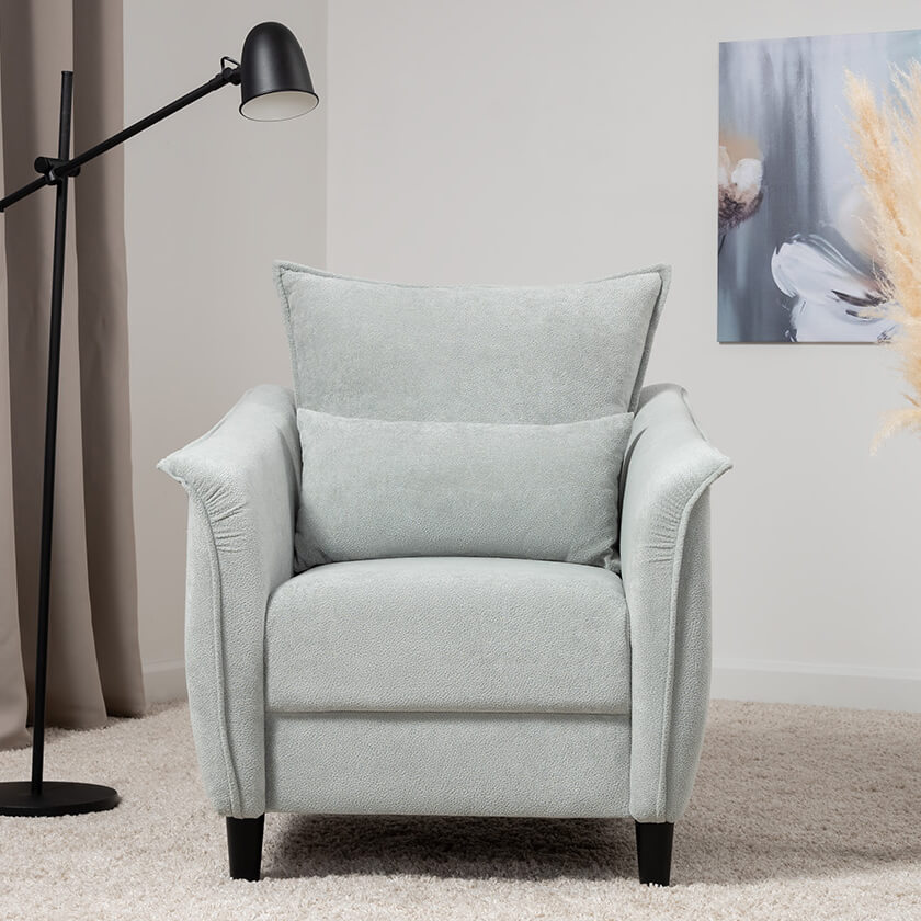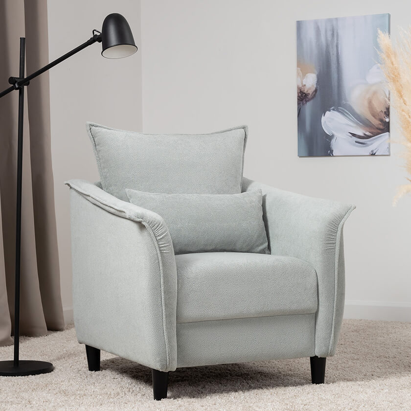Изогнутые подлокотники в форме лепестков придают коллекции изысканный и элегантный вид, а дополнительные декоративные подушки обеспечат поддержку поясницы и помогут уютно устроиться на кресле.