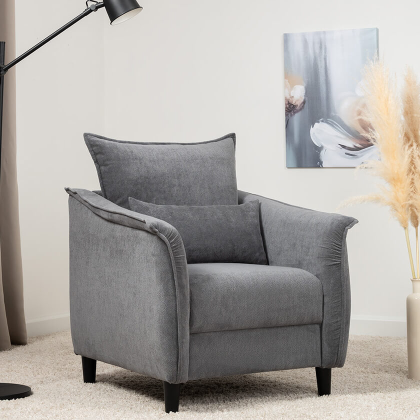 Изогнутые подлокотники в форме лепестков придают коллекции изысканный и элегантный вид, а дополнительные декоративные подушки обеспечат поддержку поясницы и помогут уютно устроиться на кресле.