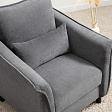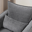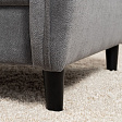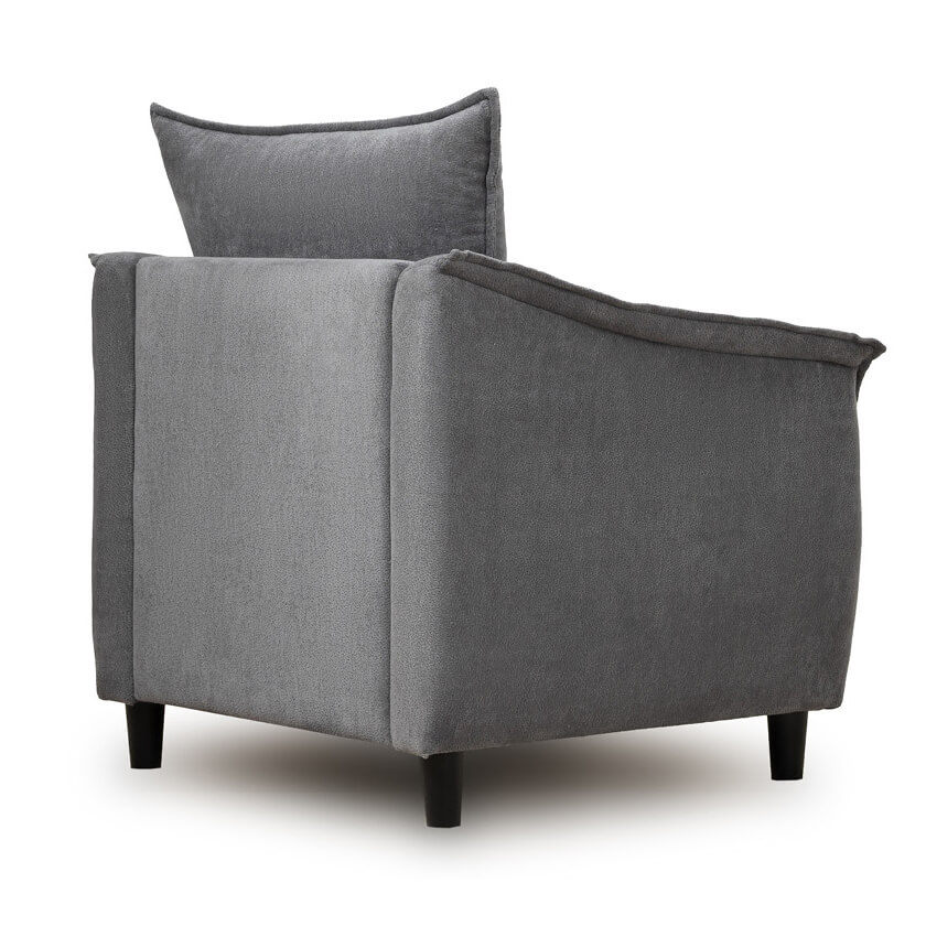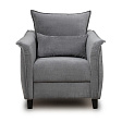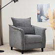 Кресло с приспинной подушкой трапецивидной формы на молнии, по трем сторонам которой проложена отделочная строчка на 1,2 см. По контуру боковин проложен декоративный кант на 1,2 см основной ткани. Кант проходит по центру передней части боковины, а по внутренней верхней части сборка.