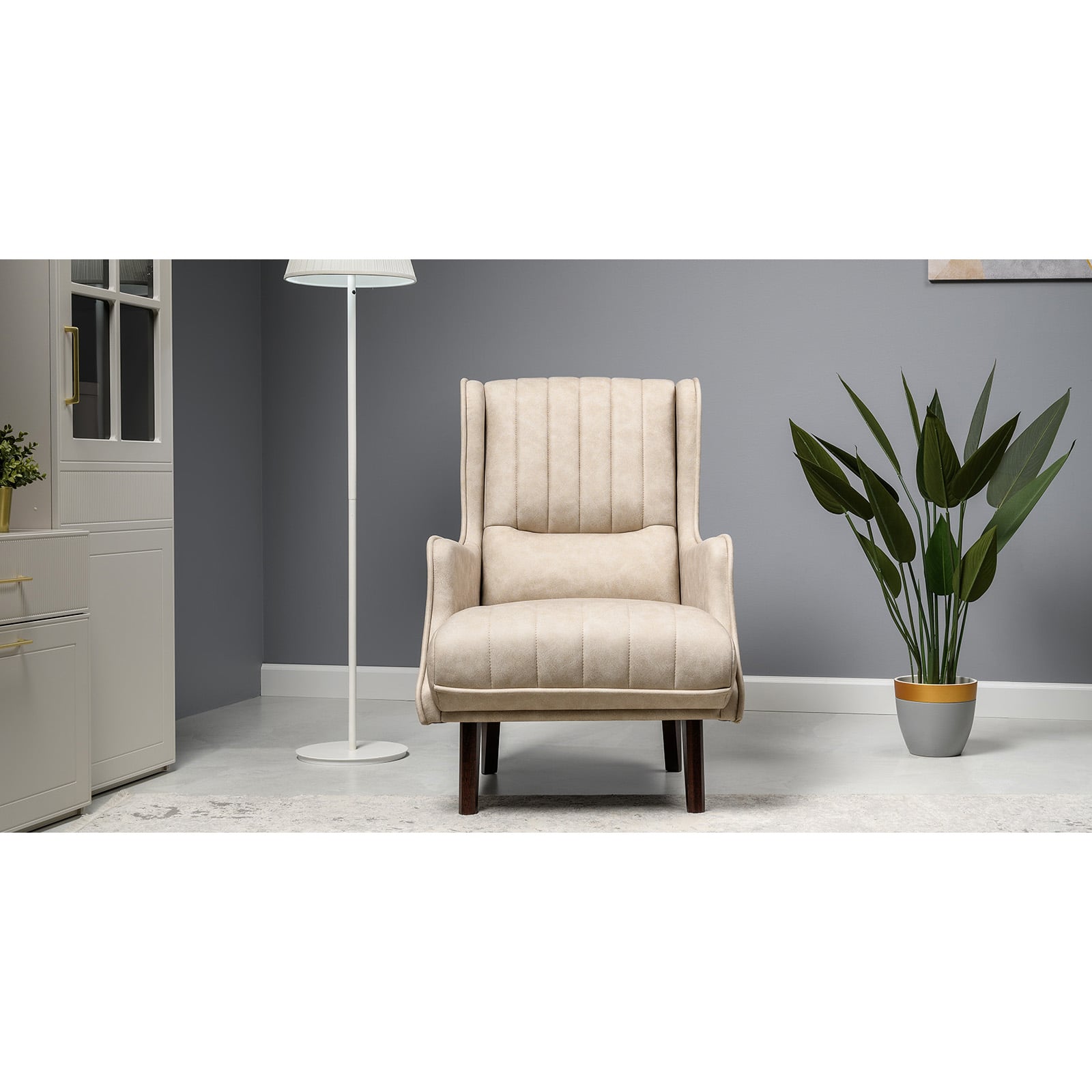 Искусственная замша MUSK — мелкозернистое тиснение, повторяющее природные текстуры, создает в образе мебели ненавязчивый визуальный акцент.