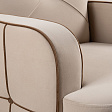 Декоративные канты на вставке подлокотников. Пуговицы в местах пересечения кантов на подушке и вставке подлокотников. По торцам подлокотников и думках контрастный декоративный кант. Защипы на сиденье и подушке.