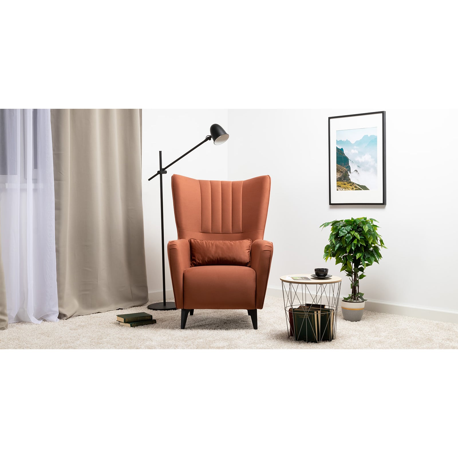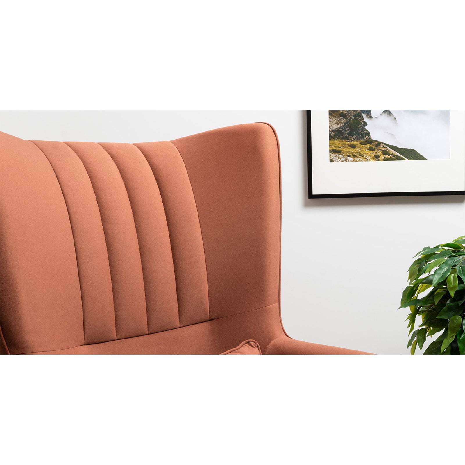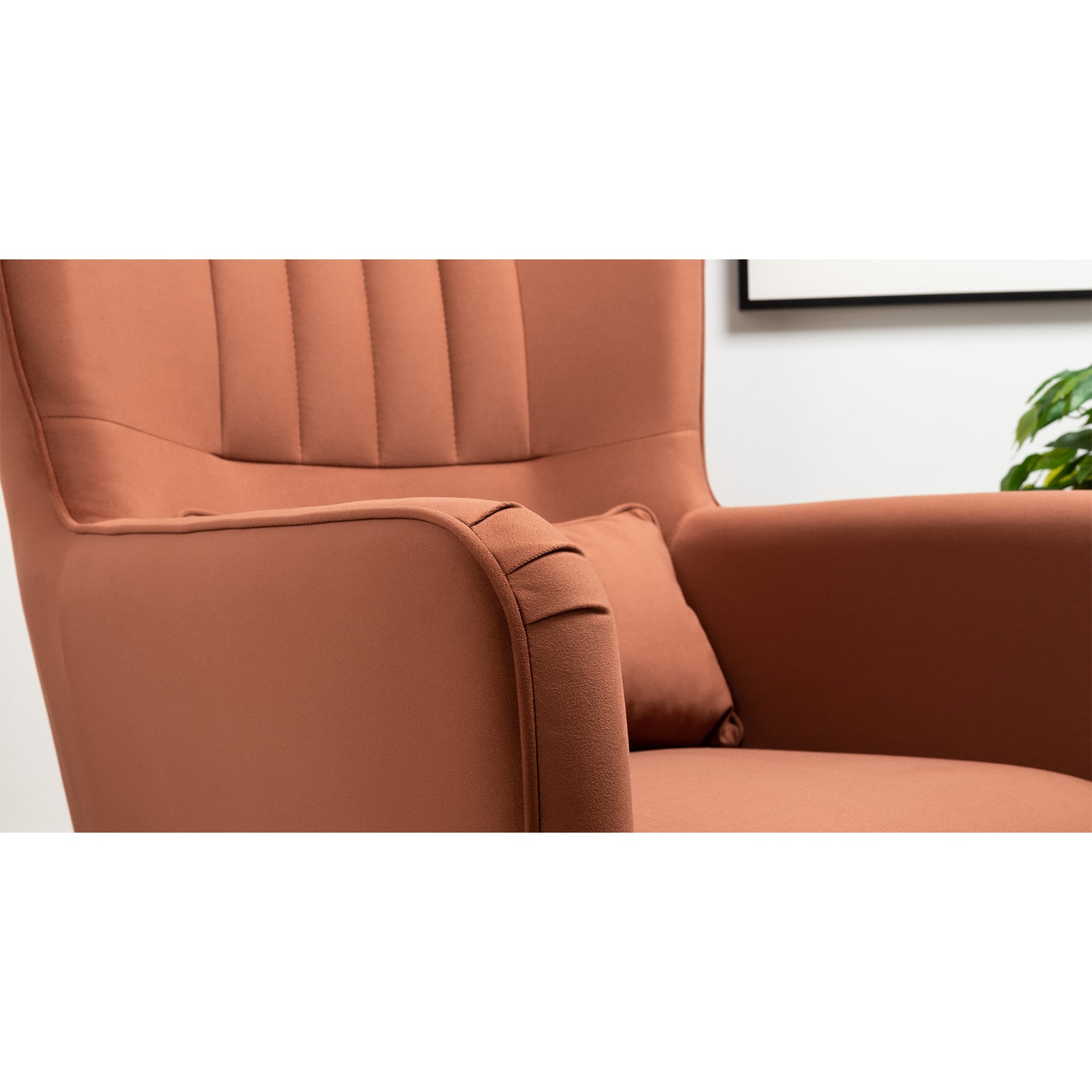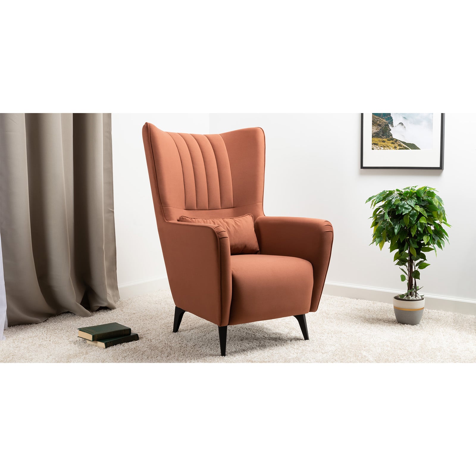 Декор: вертикальная объемная стежка в средней части спинки; кант на спинке, подлокотниках и декоративной подушке.